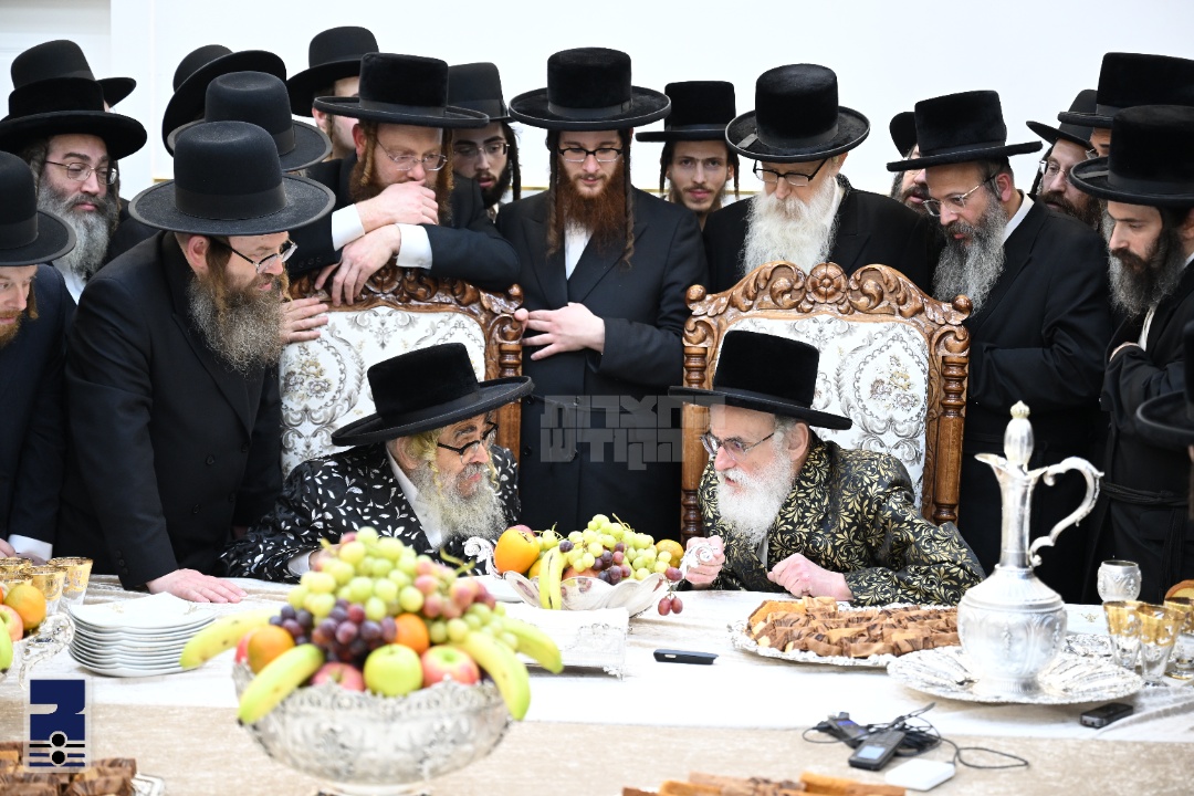 אזוי האט דער שמועס זיך פארצויגן מיט דברי תורה וסיפורי צדיקים. דערנאך האט דער וויזניצער רבי מכבד געווען דעם רבי'ן מיט לחיים, מזונות און פירות. אויפן וועג ארויס נאכן באזוך האט די רבי שליט"א זיך אומגעקוקט אויפן שטח הבנייה פונעם מרכז העולמי ישועות משה וויזניץ אינאיינעם מיטן שוואגער די וויזניצער רבי.