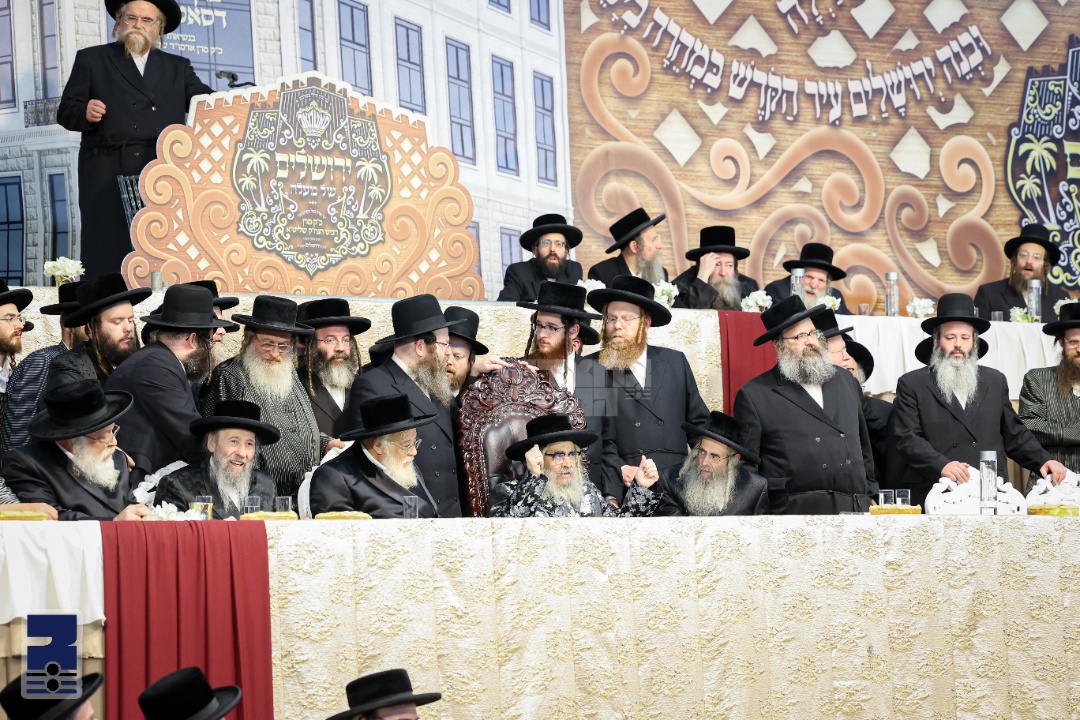 צום ערשט איז ערשינען דער פוסק הדור הגאון האדיר רבי משה שטערנבוך שליט"א בעל תשובות והנהגות וועלכער איז אויפגענומען געווארן אויפן בימת הכבוד דורך ידיד נפשו די רבי שליט"א, דערויף זענען ערשינען די גדולי צדיקי וזקני ירושלים שליט"א ובראשם שרי התורה מרנן ורבנן חברי הבד"צ שליט"א אינאיינעם מיט צענדליגער מורי הוראה ומנהיגי קהילות הקודש אדמורי"ם ורבנים וראשי ישיבות שליט"א.