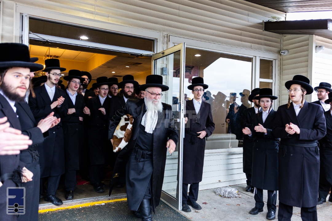 דערנאך האט דער גאסט אפגעראכטן א מסיבת לחיים אין היכל המתיבתא. דער מנהל הרב יעקב יוסף טווערסקי בן האדמו"ר מראחמיסטירווקא מאנסי האט מקבל פנים געווען זיין חשובן פעטער, און דערנאך האט הרה"צ רבי אהרן מענדיל שליט"א איבערגעגעבן א לענגערע שמועס בדברי חיזוק והדרכה פאר די תלמידי המתיבתא, צום איצטיגן זמן החורף. צום שלוס זענען אלע בחורים אריבער וואונטשן לחיים. אויפן וועג ארויס, האט ער געקלאפט א מזוזה ביי איינע פון די טירן אינעם בנין מתיבתא, און ווארעם אנגעוואונטשן די הנהלה רוחני וגשמי.