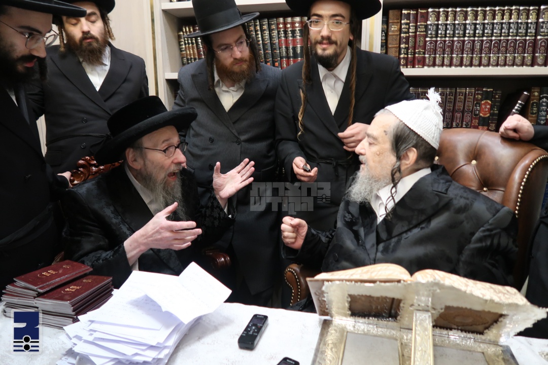 די וואך האט הגאון הגדול דומ"ץ קרית יואל שליט"א אפגעשטאט א באזוך אין ירושלים במעונו פונעם פאר הדור הגה"צ רבי יעקב מאיר שעכטער שליט"א, זייענדיג צוגאסט אין ארץ ישראל לכבוד די מסע המרומם פון האדמו"ר מסאטמאר. הרה"צ רבי יעקב מאיר שליט"א האט אויפגענומען דעם חשובן דאסט מיט גרויס שמחה און עס איז געשאפן געווארן א שיינעם שמועס בדברי תורה ועניני דיומא, נאכן באזוך האבן זיך די צוויי מאורות הגדולים געזעגענט בברכות לרוב.