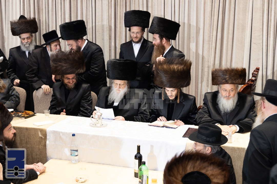 דער רבי שליט"א האט אפגעראכטן פייערדיגע ריקודין מיט די מחותנים און די חשובע זיידעס אויפן בימת הכבוד, און נאכן בענטשן ממשיך געווען מיט די ריקודין אין צענטער פון זאל מיט די משפחת המלוכה און די חשובע רבנים קרובי המשפחה.
