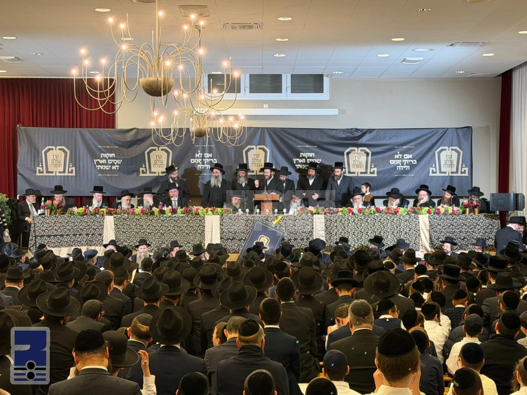 בקול אדיר וחזק האט מען דאן זוכה געווען צו הערן קבלת עול מלכות שמים דורך כ"ק אדמו"ר מראחמיסטריווקא שליט"א וועלכע האט אויך איבערגעלאזט ווארימע ברכות לכל הקהל הקודש, דערמיט איז דער מעמד געשלאסן געווארן מיט גאר פייערליכע ריקודין לכבוד התורה. שפעטער ביינאכט נאכן מעמד האט זיך די ראחמיסטריווקא רבי שליט"א ארויסגעלאזט צום לופטפעלד אויפן וועג צוריק קיין ארצינו הקדושה.