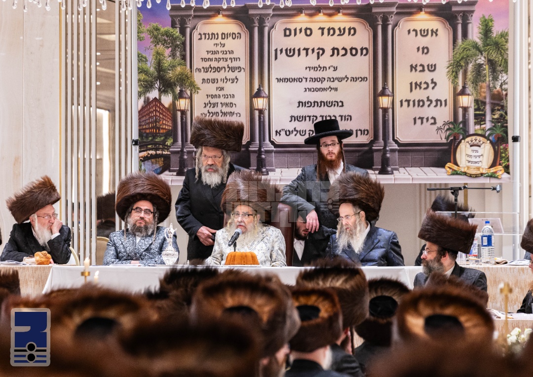 דעם מוצאי שבת פ' נח העעל"ט איז כ"ק אדמו"ר מסאטמאר שליט"א אנגעקומען קיין וויליאמסבורג צו באשיינען די מעמד סיום מסכת קידושין דורך יוצאי תלמידי מוסדות סאטמאר כיתה ט' – מכינה לישיבה וועלכע איז פארגעקומען אין די זאלן פון גינת אסתר.