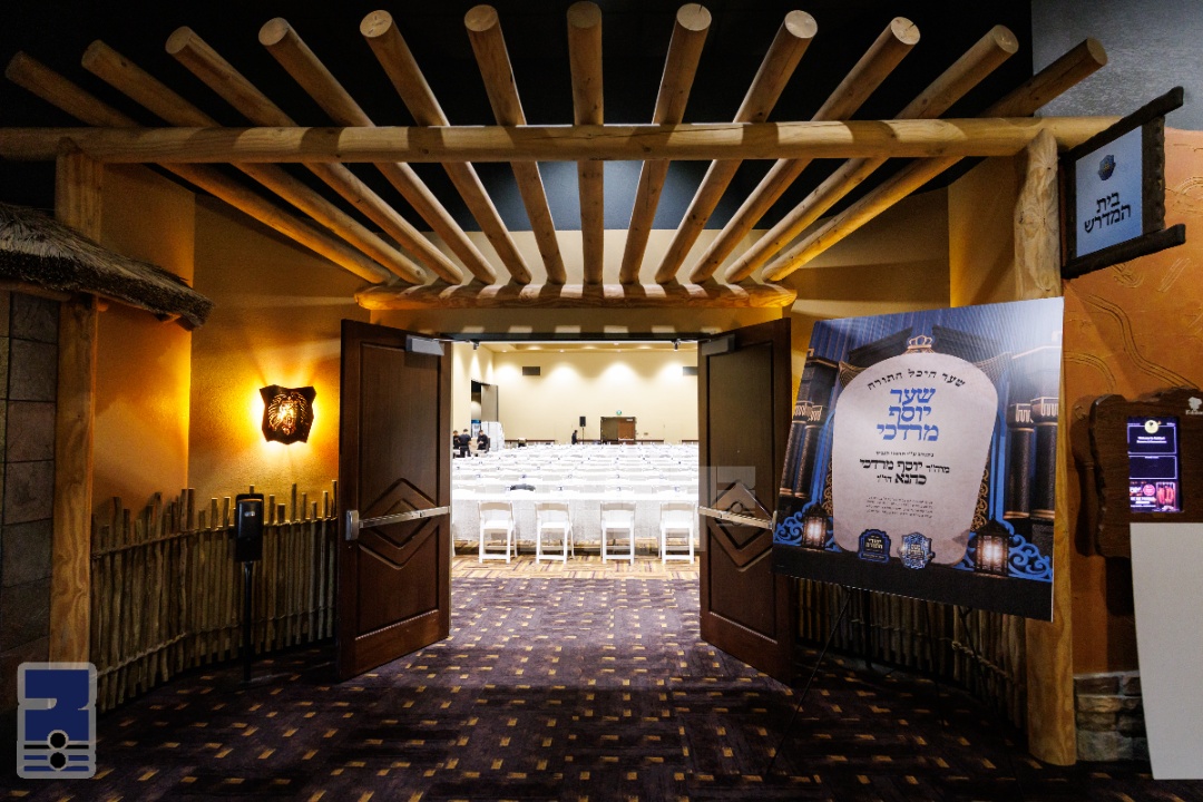 טויזנטער חתני התורה, עמלי התורה, האבן זיך פארזאמלט אינעם גיגאנטישן "קאלאהארי סענטער" אין פענסילוועניע, וועלכער איז פארוואנדלט געווארן אלס פרעכטיכער אכסניא של תורה, צו פייערן בהמון חוגג דעם רירנדן מעמד אדיר ונשגב סיום חצי ש"ס און התחלת סדר נזיקין.