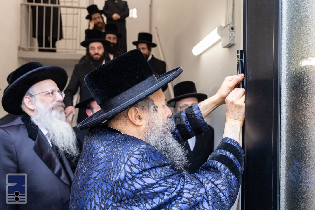 קאנארסי: האד' מבאבוב-45 קובע געווען מזוזות אין צוויי נייע בניני הישיבות קטנות "קדושת שלמה" און "תפארת שלמה"