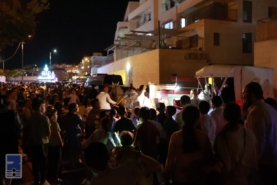 דער נדבן ר' מיימון אביטל שיחי', איז געזעצט געווארן אין א קעניגליכע קאראטע צוגעבינדען צו ווייסע פערד, וועלכע איז בייגעשטייערט געווארן דורך הרב יחזקאל שושא שיחי', מחשובי תושבי השכונה, ארויסצוהייבן די געוואלדיגע כבוד התורה.