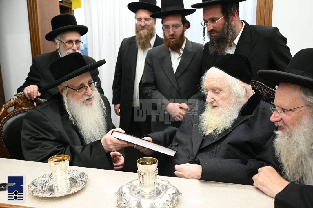 כ"ק האדמו"ר מצאנז שליט"א איז היינט נאכמיטאג אנגעקומען אויף א באזוך במעון קדשו פונעם פוסק הדור הגאון האדיר רבי משה שטערנבוך שליט"א אין די הר נוף געגענט אין ירושלים, לברך ולהתברך בברכת השנים.