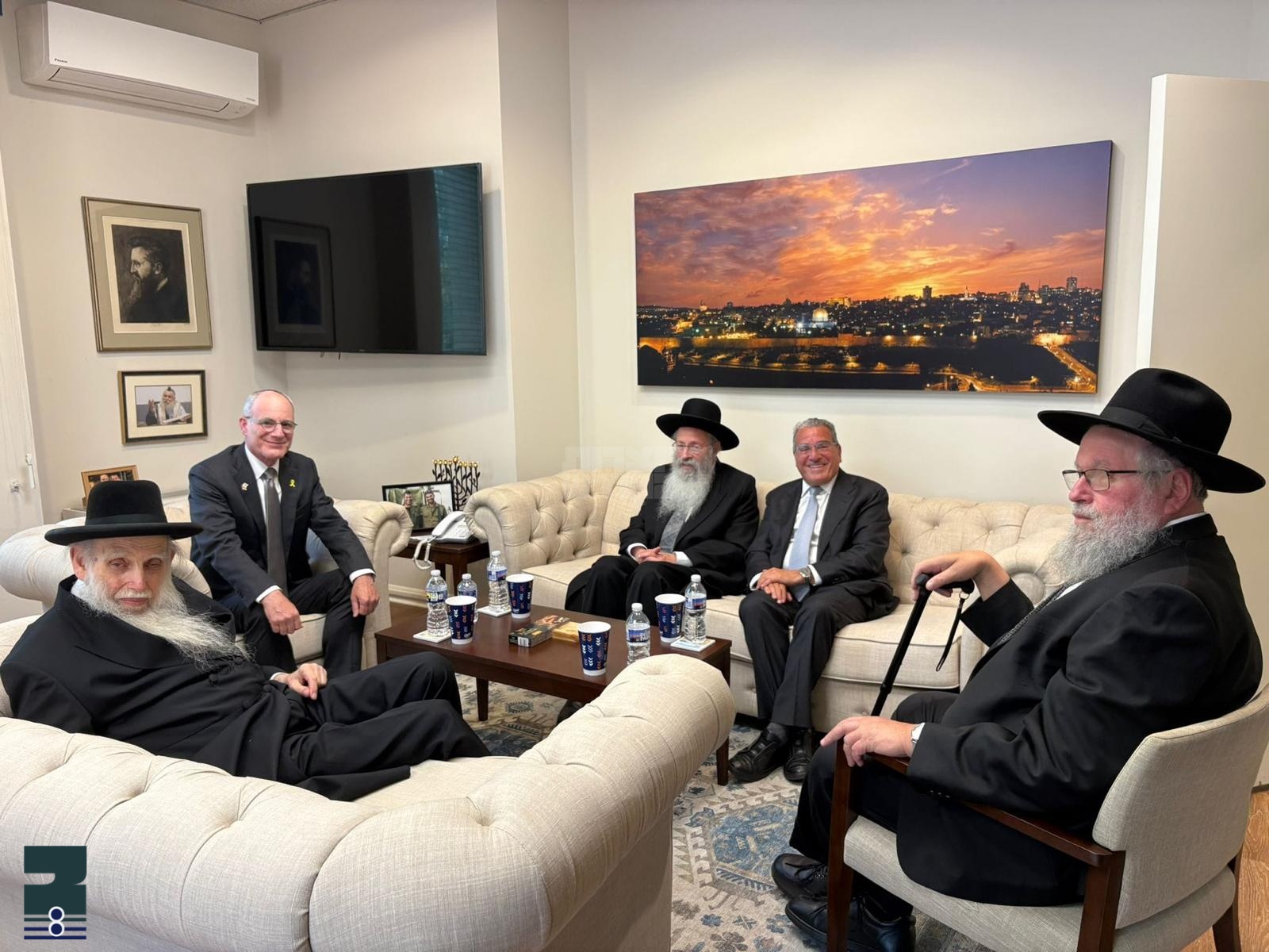 א היסטארישע באזוך איז פארגעקומען נעכטן דינסטאג, ווען א משלחת כבוד פון דריי גדולי ראשי ישיבות אין אמעריקא זענען אנגעקומען צום עיר הבירה וואשינגטאן, צו די מדינות ישראל אמבאסאדע אין אמעריקא, וואו זיי האבן זיך געטראפן מיטן מדינות ישראל אמבאסאדאר אין אמעריקא יחיאל לייטער, צו שתדל'ען אנבאלאנדט די ביטערע גזירת הגיוס אין ארה"ק. די זיצונג איז ארגאניזירט און אנגעפירט געווארן דורך הרבני הנגיד ר' שלמה ווערדיגער שליט"א, פארזיצער פון אגודת ישראל אוו אמעריקא.