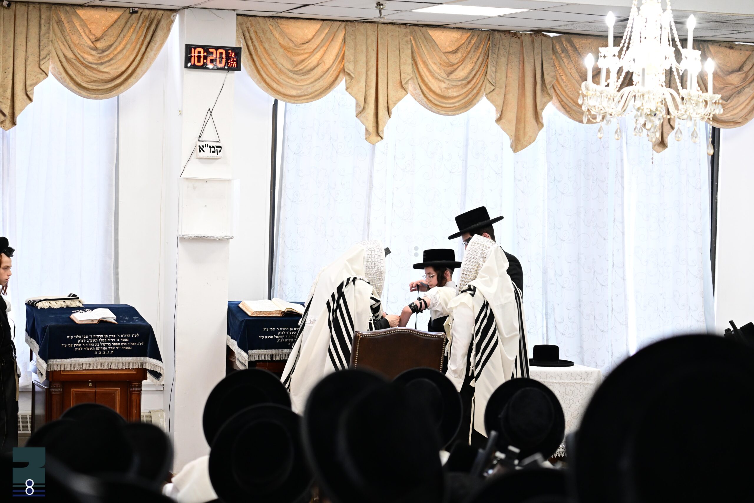 דערנאך איז פארגעקומען די מסיבת לחיים מיט די בחורים אין ביהמ"ד, מען האט געזינגען חרוזים, און דער רבי האט געטריקנען לחיים און אנגעוואונטשן די בחורים, דערנאך האט דער רבי משמיע געווען דברות קודש, ובפרט איבער אויפשטיין פארטאגס לערנען וואס איז א בחינה פון מסירת נפש, און אזוי אויך שטארק מעורר געווען די בחורים נזהר צו זיין נישט צו רעדן קיין שיחת חולין מיט די תפילין, דערביי האט דער רבי מעורר געווען די בחורים אדורכצולערנען די פירוש המילות פון די לשם יחוד להנחת תפילין און פון אהבה רבה און צוגעענדיגט מיט ברכת קודש פאר די מרביצי תורה און פאר אלע בחורים.