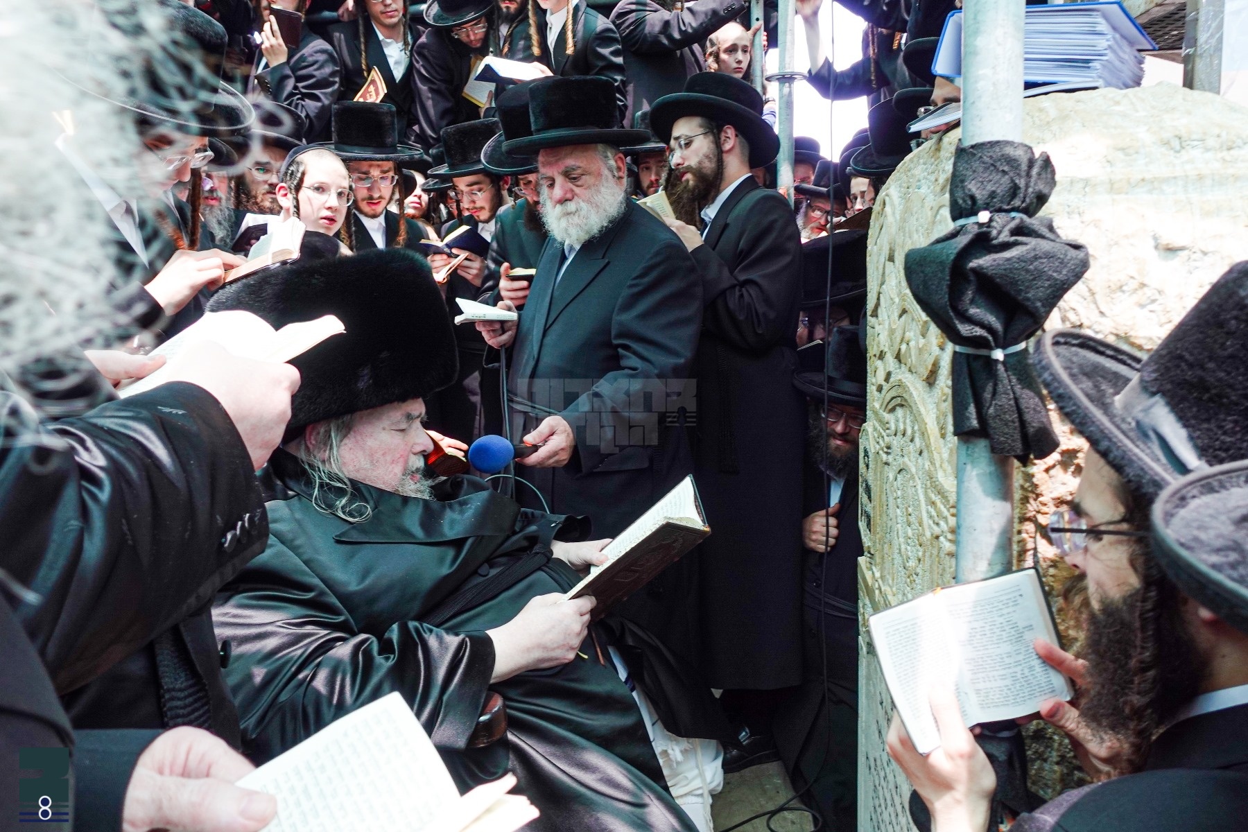 דער גאנצער חלקה איז געווען געשטאפט מיט חסידים עד אפס מקום, ווען הונדערטער חסידים שטעלן זיך אין די הייעך, צו קענען מיטהאלטן די התרגשות'דיגע מאמענטן, דאס התעוררות וואס האט זיך אפגעטאן ביים ציון גופא איז אומבאשרייבליך, אנקומענדיג צום ציון האט דער רב שליט"א מפריש געווען צדקה פאר מרכז מוסדות בעלזא און דאן געדינט אלס שליח ציבור צו אמירת ספר רביעי שבתהילים ומי יתנה תוקף דאס גרויס התעוררות וואס האט געהערשט ביים זאגן "יהי רצון", און בפרט ביי אמירת י"ג מדות של רחמים.