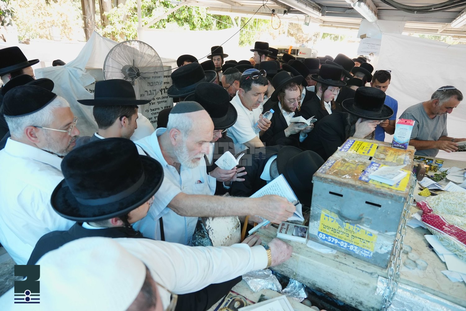 היי יאר האבן די עסקנים אויפ'ן בית החיים אויפגעשטעלט א גרויסן שאטער העכער דעם ציון הק' צו באשיצן די מתפללים פון די היצן, גלייכצייטיג איז צוגעשטעלט געווארן דער "דרך מהדרין" באזונדער פאר מענער, פון די אויבערשטע שאסיי, און פאר נשים באזונדער, פון די אונטערשטע גאסן. אין די זעלבע צייט איז אויך צוגעשטעלט געווארן ביים אריינגאנג צום בית החיים, אכילה ושתיה, ווארימע און קאלטע געטראנקען און לייכטע איבער-בייס פאר די עולים לציון הק' און בפרט פאר די טויזנטער אידן וועלכע קומען צו פארן פון די ווייטערע שטעט אין ארץ ישראל.