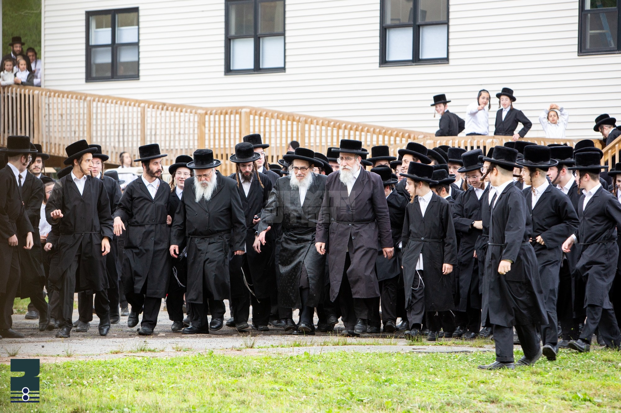 דער רבי שליט"א איז אנגעקומען בשערי המחנה מאנטאג נאכמיטאג, און געדאווענט מנחה אין ביהמ"ד פון די אברכים. שפעטער אויפדערנאכט האט דער רבי געדאווענט מעריב אין ביהמ"ד פון די מחנכים און מדריכים, נאך מעריב איז פארגעקומען א מסיבת לחיים און מעמד קבלת פנים לכבודו וואו דער רבי האט ארומגעשמועסט שיינע ענינים מיטן שוואגער הגה"צ אבד"ק לימינוב שליט"א, און פארטיילט שיריים פאר די עסקני המחנה.