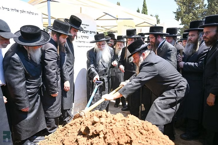 דערנאך האבן מספיד געווען די שוואגער פונעם נפטר הגאון הגדול רבי אשר ווייס גאב"ד דרכי תורה, און זיין איידעם הרה"ג ר' הערש מיילעך הורוויץ רב ביהמ"ד צאנז אין כפר גנים פתח תקווה, דערנאך האט די רבי שליט"א אינאיינעם מיט הונדערטער חסידים באגלייט די מיטה צום ריכטונג פונעם בית החיים ותיקין אין נתניה, ווי דער רבי האט אין א זעלטענעם ערשיינונג מיטגעהאלטן די גאנצע לויה מבואו ועד צאתו ביז נאכ'ן סתימת הגולל, ווי די נפטר איז געקומען למנוחת עולמים אויפן בית החיים אין נתניה סמוך ונראה צום אוהל הק' פון רבו הרה"ק מצאנז קלויזנבורג זי"ע. אויפן בית העלמין האבן מספיד געווען גיסו הרה"ג ר' בן ציון ראבינאוויטש מראשי ישיבת ראחמיסטריווקא, און בנו הרה"ג ר' דוד זאלמנאוויטש מראשי ישיבת היכל התורה אין קרית צאנז, נאך די קבורה האט די רבי שליט"א מנחם געווען די אבלים צווישן די שורות כנהוג.