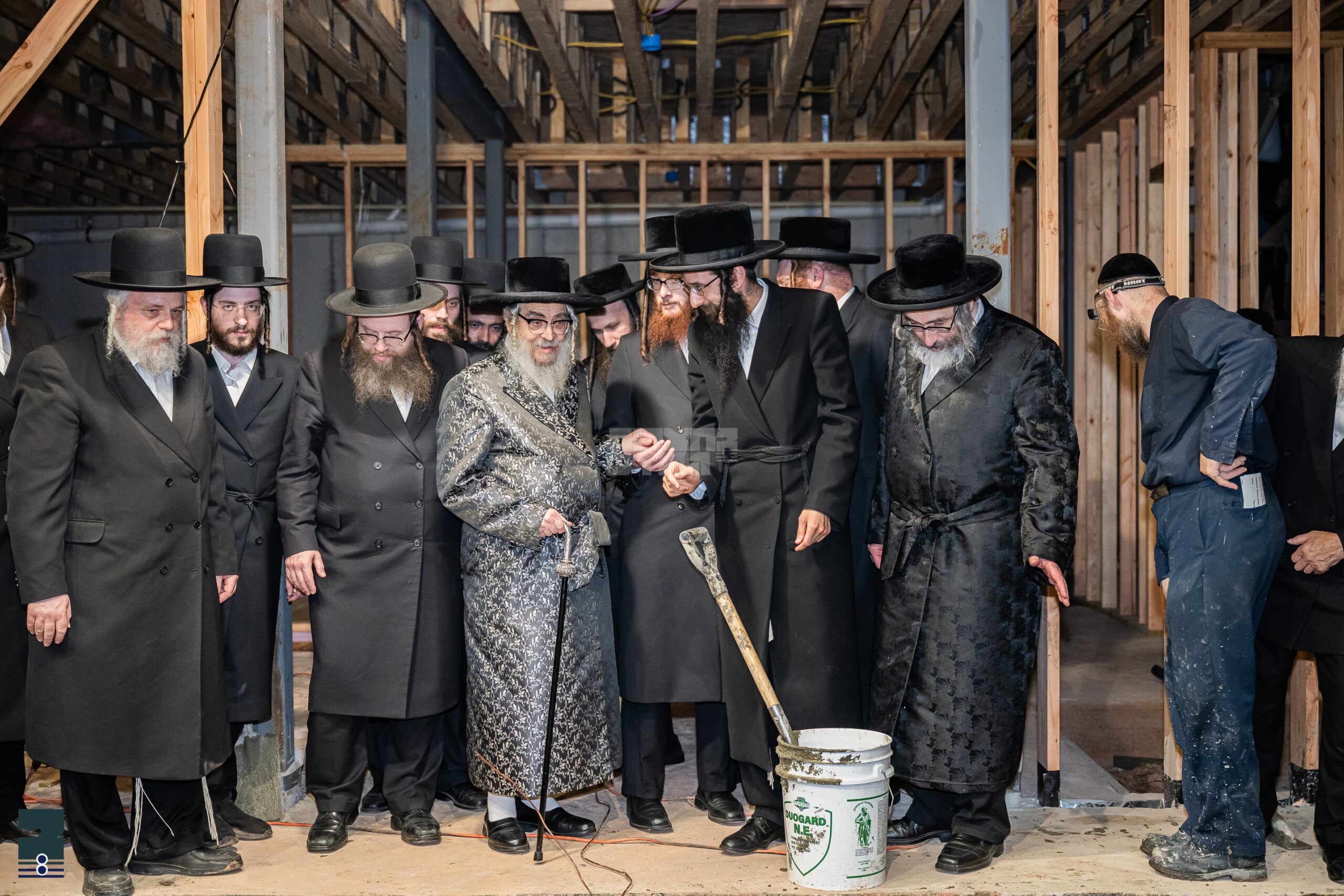 דערנאך איז דער רבי אראפ אויפן אונטערשטן שטאק און זיך אומגעקוקט אויף די היכל התורה וואס ווערט געבויעט, און דאן איז פארגעקומען די מעמד יציקת הבורות וואו דער רבי האט געגאסן די בורות און מכבד געווען די אנוועזנדע רבנים ובראשם דער מייסד העיר כ"ק האדמו"ר מקאסאן שליט"א און כ"ק האדמו"ר מראחמיסטריווקא לינדען שליט"א און באזונדער די ראשי והנהחלת הקהילה.