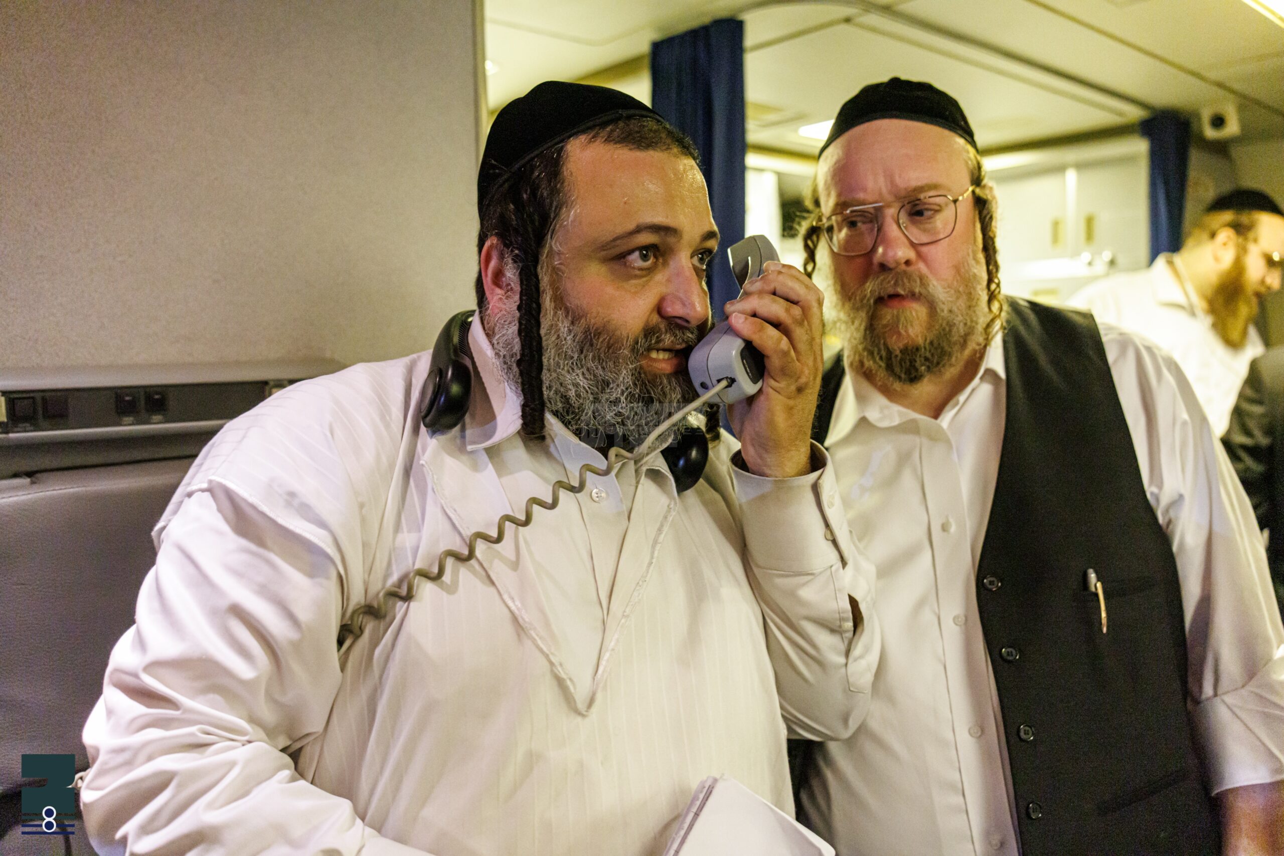 אויפ'ן פליגער איז געווען צוגעגרייט אויף יעדן זיץ א פעקל צידה לדרך מיט עסן און ספרי קודש וואס פעלט זיך אויס פאר די נסיעה. תיכף נאכדעם וואס דער פליגער האט זיך געהויבן האט מען געהאט די זכי' אז דער רבי שליט"א האט דורכ'ן מיקראפאן משמיע געווען קורצע דברות קודש און דברי הכנה פאר'ן מסע הקודש און געוואונטשן מ'זאל פועל'ן אלעס גוטס.