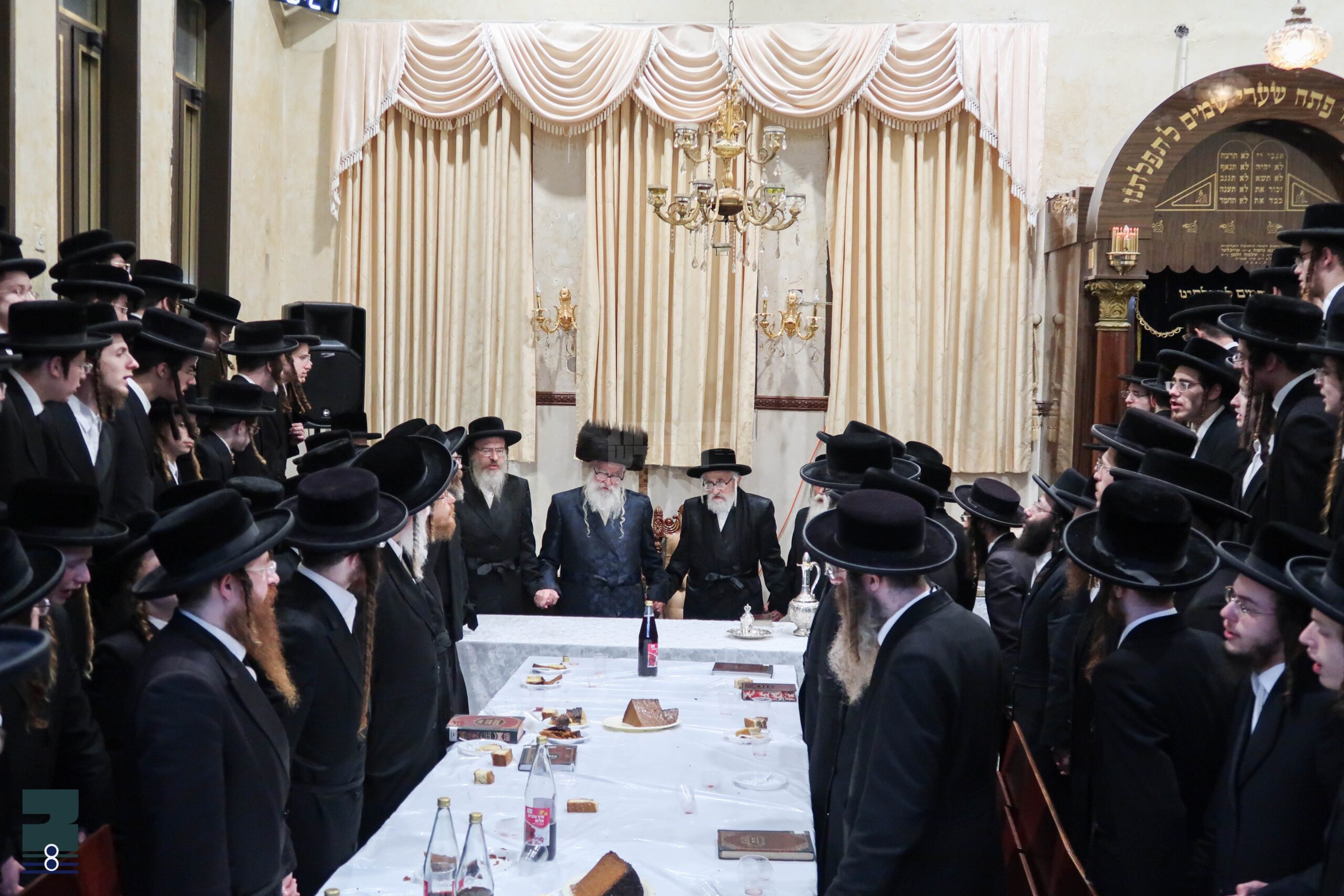 מסיבת לחיים בחצה"ק משכנות הרועים לרגל שמחה אין הויף פארגעקומען אין ניו יארק בעת די מלחמה אין ארה"ק | גאלעריע
