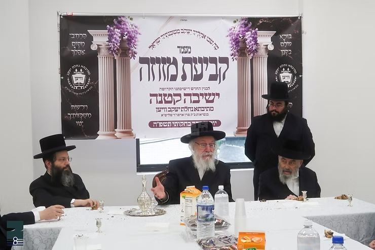 נאכ'ן איבערגעבן שיעור יומי אין די ישיבה גדולה איז דער רבי שליט"א אריבערגעפארן דעם קורצן שטרעקע פון בלויז פינף מינוט צום נייעם בנין וואו עס האבן אפגעווארט א געקליבענעם ציבור אנשים מכובדים, נגידי ותומכי הישיבה וואס זענען געלאדנט געווארן מיטצוהאלטן די מעמד.