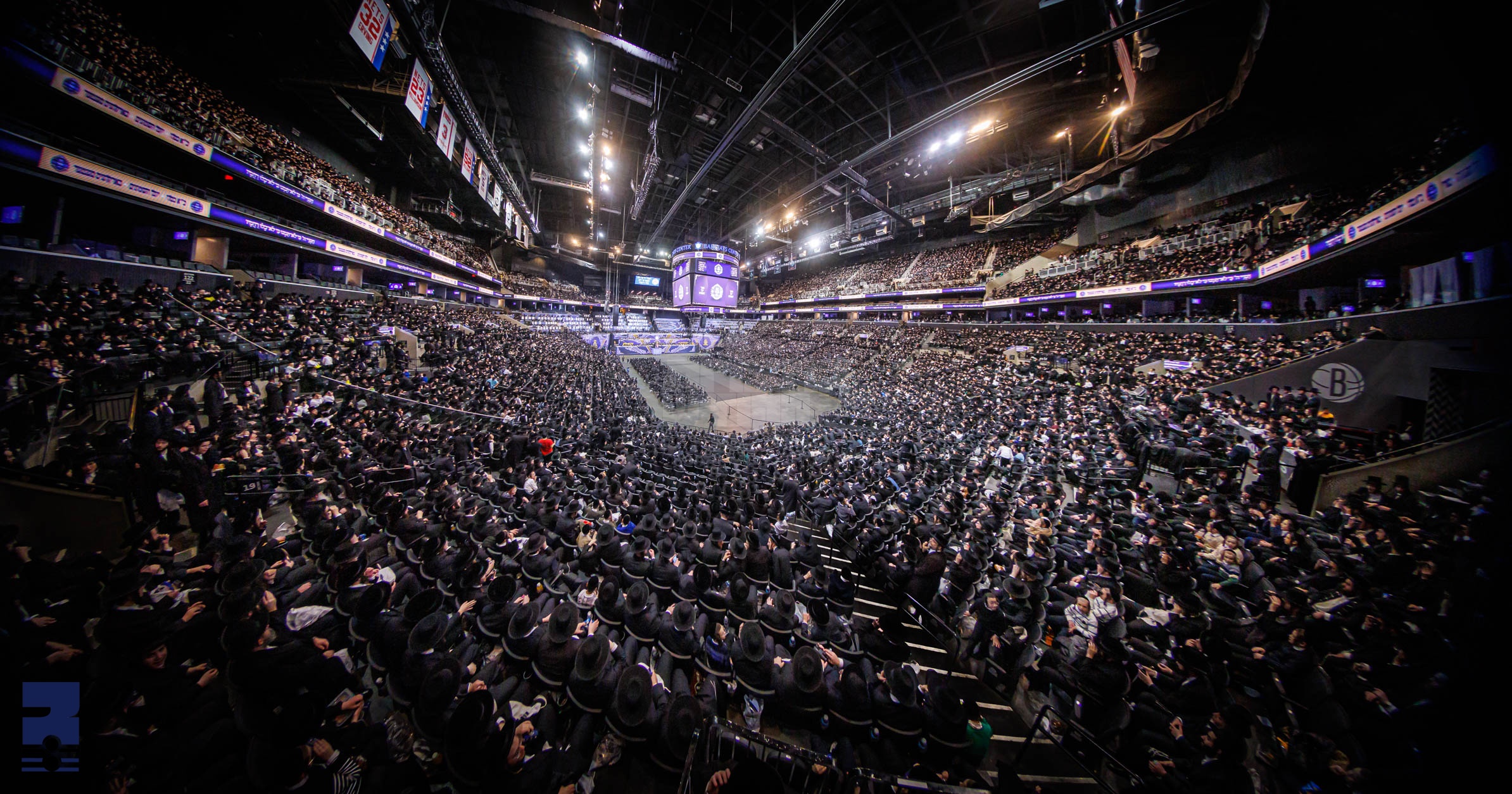 אריינקומענדיג אינעם בנין הגדול והאדיר, האט זיך אנטפלעקט די גאנצע מעכטיגע סטאדיום מיט אירע קרוב צו 'צוואנציג טויזנט זיצן' ארום און ארום, בנוסף צו די פרישע 'טויזנט' צוגעלייגטע זיץ-פלעצער אויפן פאדלאגע פונעם זאל, די מעכטיגע בימת הכבוד מיט רבנן ותלמידיהון, בנוסף צו די הונדערטער מנהלי מוסדות על טהרת הקודש בארה"ק. כולם נקבצו באו לך.