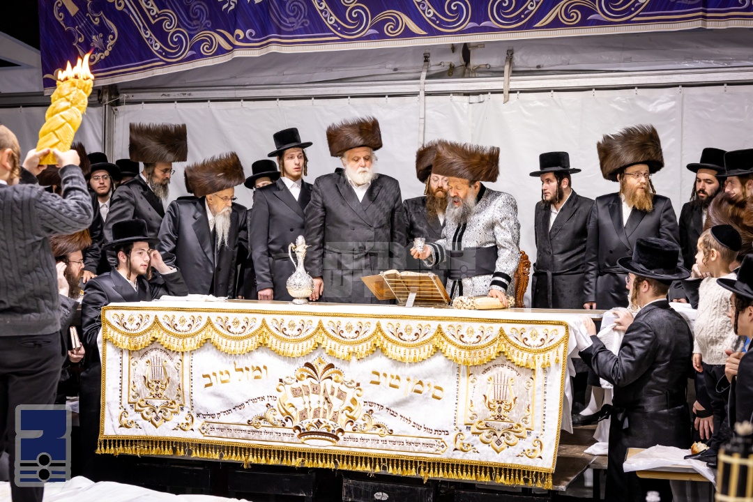 צום באשטימטער צייט איז די רבי שליט"א אריינגעקומען צום שולחן הטהור און אנגעהויבן שלום עליכם, דורכאויס די טיש האט מען געזינגען פילע ניגוני שמחה. די רבי האט זיך אויפגעשטעלט אויף א רקידה און געזאגט תורה, מיטן בענטשן האט די רבי מכבד געווען מחותנו הגה"צ אב"ד זרע קודש.