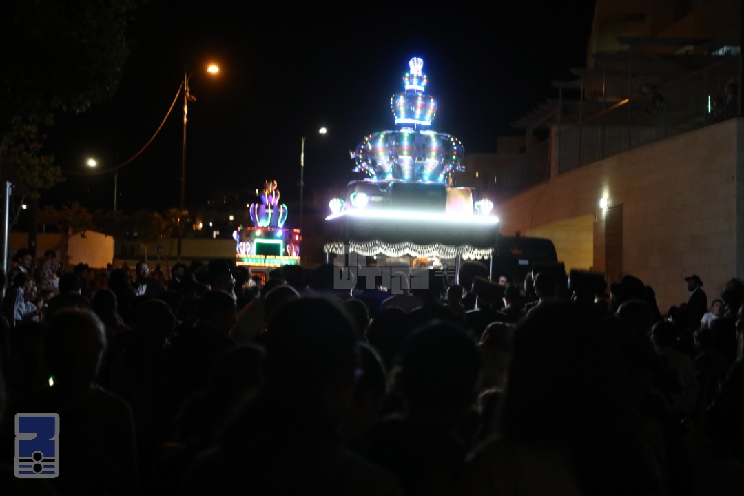 דער נדבן ר' מיימון אביטל שיחי', איז געזעצט געווארן אין א קעניגליכע קאראטע צוגעבינדען צו ווייסע פערד, וועלכע איז בייגעשטייערט געווארן דורך הרב יחזקאל שושא שיחי', מחשובי תושבי השכונה, ארויסצוהייבן די געוואלדיגע כבוד התורה.
