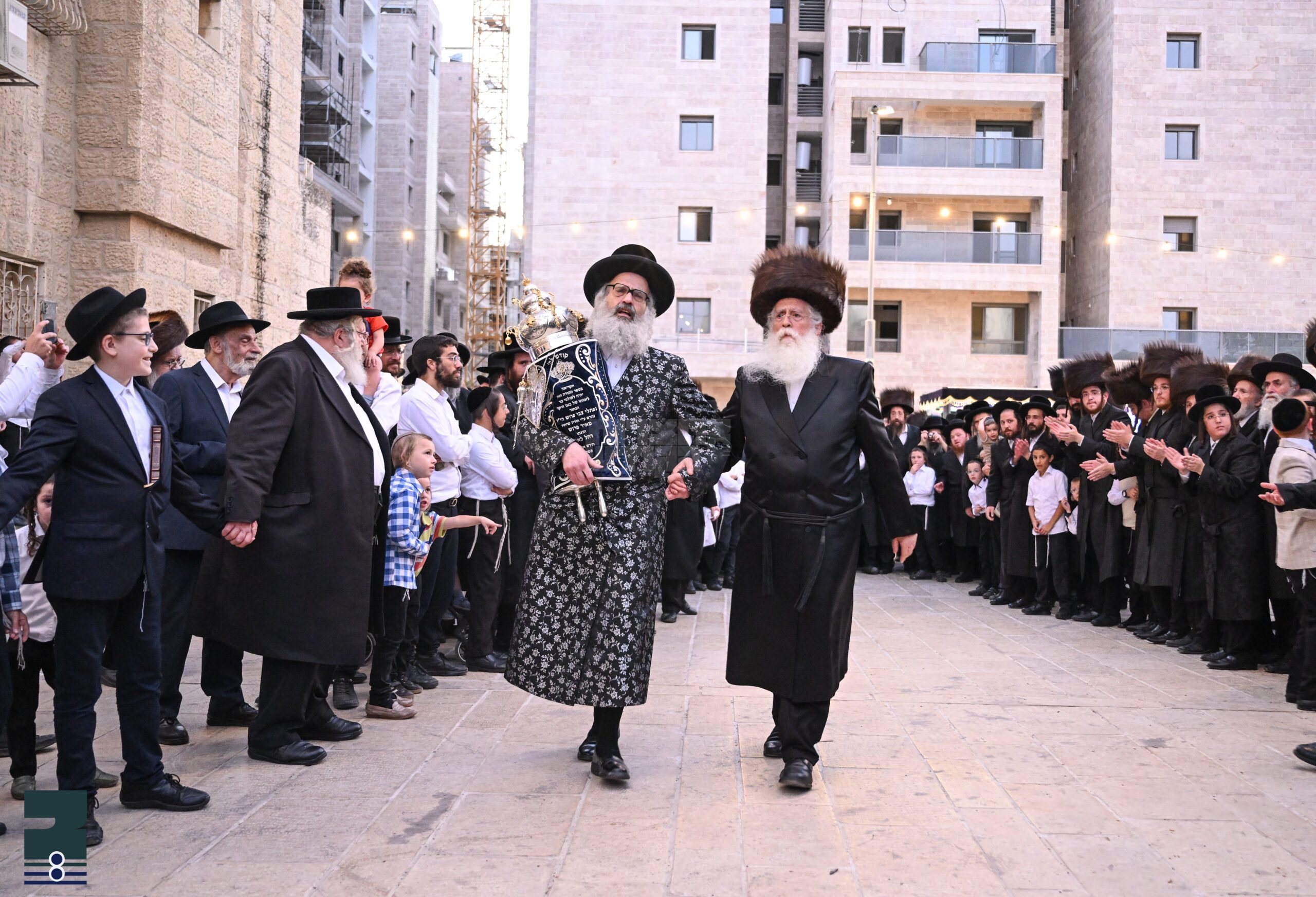 די שמחה העצומה האט זיך אנגעהויבן זונטאג פארמיטאג, ווען עס איז פארגעקומען דער מעמד סיום כתיבת האותיות פונעם ספר תורה, אין שטוב פונעם בעל השמחה. צווישן דער ריזיגער ציבור גוטע פריינד און עסקנים ואישי ציבור פון אלע שיכטן און קרייזן, פונדערנאנט און פונדערווייטנס, איז געוועהן א באזונדער זכי' אז די גדולי האדמור"ים זענען ארויפגעקומען כדי איינשרייבן אותיות לגומרה של תורה, און דערביי איבערגעבן טייערע ברכות פארן בעל שמחה און אלע משתתפים.