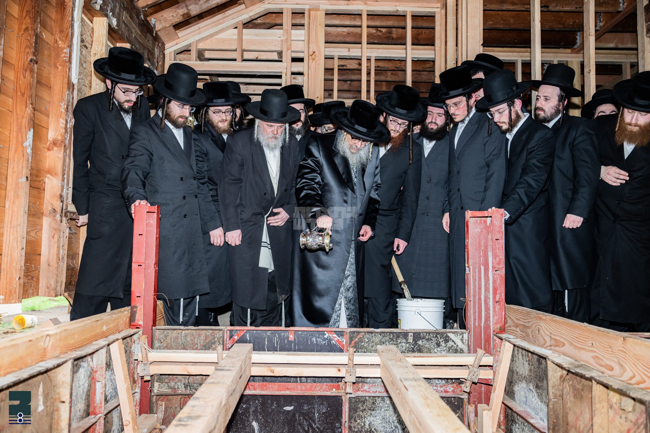 דערנאך איז דער רבי אראפ אויפן אונטערשטן שטאק און זיך אומגעקוקט אויף די היכל התורה וואס ווערט געבויעט, און דאן איז פארגעקומען די מעמד יציקת הבורות וואו דער רבי האט געגאסן די בורות און מכבד געווען די אנוועזנדע רבנים ובראשם דער מייסד העיר כ"ק האדמו"ר מקאסאן שליט"א און כ"ק האדמו"ר מראחמיסטריווקא לינדען שליט"א און באזונדער די ראשי והנהחלת הקהילה.