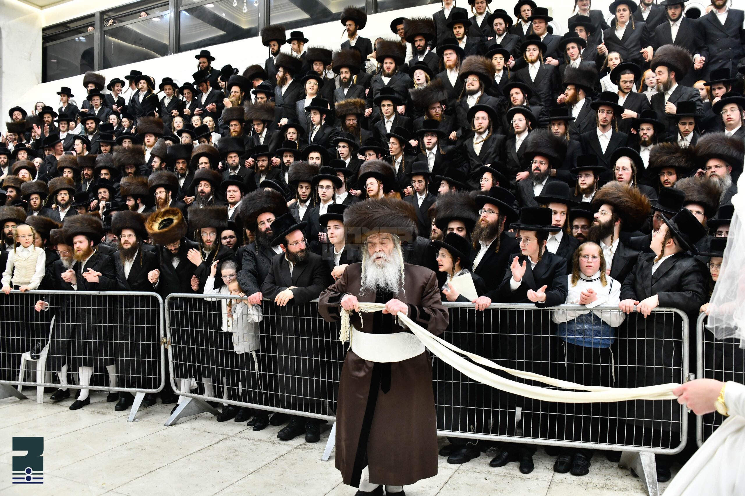 דאן איז מען ארויס צום חופה ברחובה של עיר, צוליב די שטרענגע מאסנאמען דורך די פאליציי, איז די חופה פארגעקומען אן קיין מוזיק, אבער די קול השירה בפה פון די הונדערטער משתתפים האט אפגעהילכט ביז עטליכע גאסן ווייט, בשעת מען האט געזינגען די ניגוני דביקות והתעוררות. מיט סידור קידושין איז מכובד געווארן די זיידע כ"ק אדמו"ר מקרעטשניף י-ם שליט"א, קריאת הכתובה א פעטער מצד הכלה הגאון הרב פנחס פריעדמאן ראש ישיבת נר ישראל, ברכות ראשונות כ"ק אדמו"ר מבאסטאן שליט"א, ברכה אחריתא די זיידע כ"ק אדמו"ר מזלאטשוב שליט"א. נאכן חופה האבן די זיידעס האדמורי"ם שליט"א געוונטשן מברכות קדשם, און באזונדערע ברכות אז קיינער זאל חלילה נישט ניזק ווערן פון די יעצטיגע מלחמה, ישראל נושע בהשם תשועת עולמים.