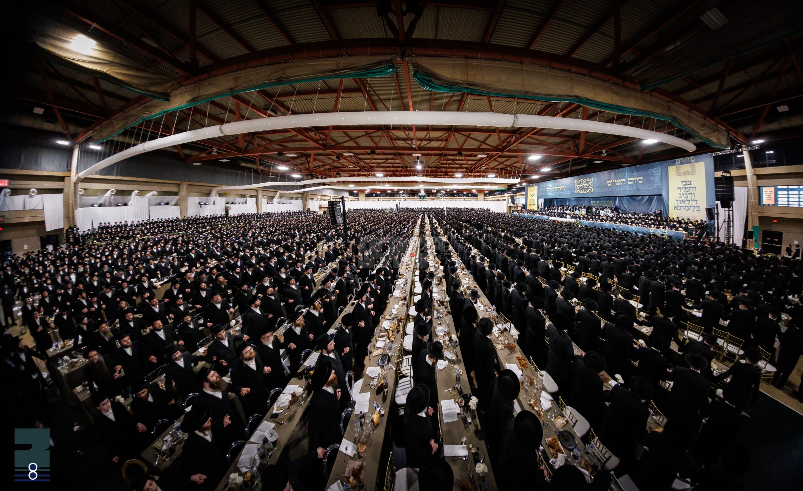 תיכף דערנאך איז דער גאנצער ציבור אריין אינעם ריזיגן זאל וואו ס'איז געווען צוגעגרייט דער גרויסארטיגער סעודת הסיום אויף א רייכן פארנעם כיד המלך, ווען אינצווישן זענען אנגעקומען א פלייץ פון פרישע הונדערטער מסיימים וואס האבן נישט אויספּיעט מיטצוהאלטן דעם סדר הלימוד פארמיטאג.