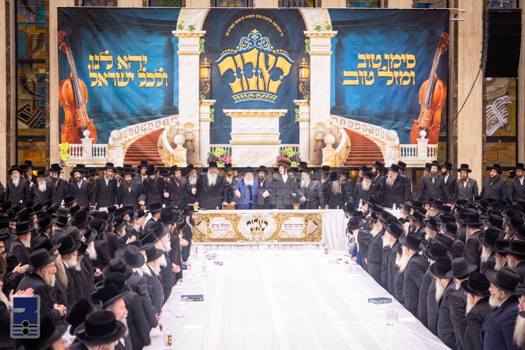 שפעטער ביינאכט זענען זיך טויזנטער חסידים צוזאמגעקומען אין ביהמ"ד הגדול לברך ולהתברך צום גרויסן שמחה. צום ערשט האט אויפגעטרעטן דער זיידע הרה"צ ר' לייבוש הורוויץ שליט"א וואס האט ארויסגעברענגט רגשי לבבו צו די שמחה. דערנאך האט דער רב שליט"א משמיע געווען אמרי קודש און ארויסגעברענגט דברי שבח והודאה און דערביי מזכיר געווען די ישועות אין אלע ענינים וואס אידן זענען אנגעוואנדן און מסיים געווען בברכת קדשו אז די שמחה זאל משפיע זיין נאך שמחות פארן גאנצן עולם.