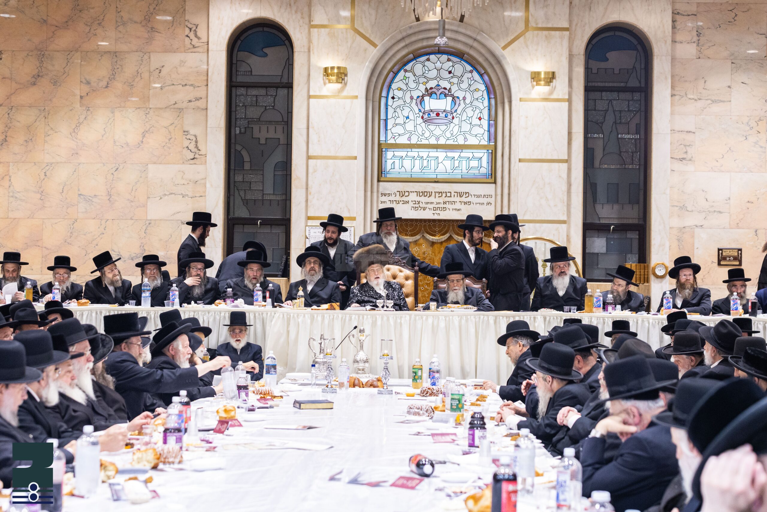 דורכאויס די טיש האט די רב שליט"א אויפגענימען און ווארעם באגריסט די פילצאליגע רבנים גאונים וצדיקים, אדמורי"ם וראשי ישיבות, וועלכע האבן באשיינט די סעודה לרגל ההילולא קדישא, צווישן זיי הרבנים מרודניק, באיאם, קאלסבורג, ברעזשאן, היבנוב, האליין, סטריזוב, מראה יחזקאל, יאקע, מאד, אוהעל לעיקוואד, מאקאווא ב.פ., אוהעל ב.פ., הגאון ר' לייבל וויליגער ר'אש ישיבת תורה ודעת, און נאך.