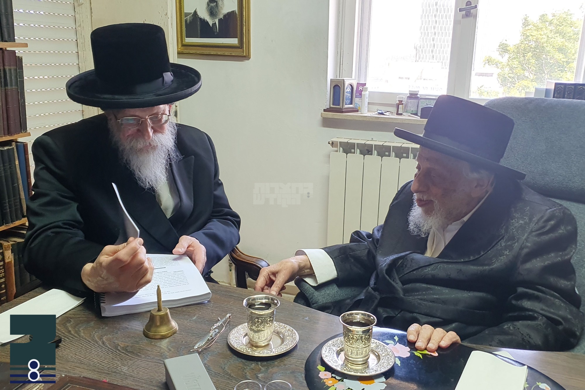נעכטן פארמיטאג האט כ"ק אדמו"ר מבאיאן שליט"א אפגעשטאט א באזוך ביי שאר בשרו כ"ק אדמו"ר מקאפיטשניץ שליט"א, וועלכע ערהוילט זיך נאכן דורכגיין אן אפעראציע פארלאפאנעם וואך. די רבי שליט"א האט שואל געוועהן בשלומו און עס איז געשאפן געווארן א שיינעם שמועס בדברי תורה וסיפורי צדיקים. דערנאך האט די קאפיטשניצער רבי געצייגט פארן רבי'ן די נייע באנד אינעם סעריע ספרים מלאכי רחמים, תולדות חייהם פון צדיקי בית אפטא און קאפיטשניץ וואס דער רבי גרייט זיך ארויסצוגעבן לאור עולם. נאכן באזוך האבן די רבי'ס געטרינקען לחיים און די באיאנער רבי האט אנגעוואונטשן דעם רבי'ן א רפואה שלימה און ברכת מזל טוב לרגל די געבורט פון אן איר אייניקל, ונפרדו לשלום.