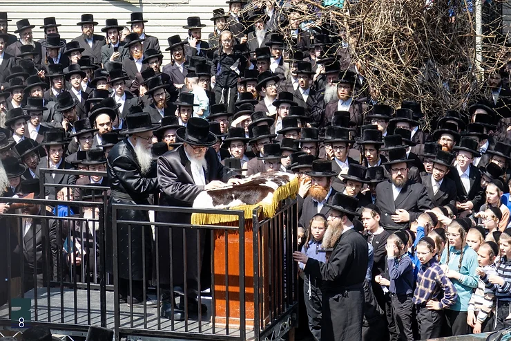 דער רבי איז אנגעקומען צו די אייזנהאוער גאס און איז ארויף אויף א סטעידזש, כדי יעדער זאל קענען מיטהאלטן. הגאון הצדיק רבי יוסף ישראל אייזנבערגער דומ"ץ שיכון סקווירא, האט צוגעוויזן פארן רבי'ן די ביימער, און דער רבי האט געמאכט די ברכה, הויעך אויפן מייק ויענו העם אמן. דערנאך האט דער עולם געזאגט די ברכה פאר זיך און דער רבי האט מאציל געוועהן קדשו מ'זאל דערלעבן איבערן יאהר.