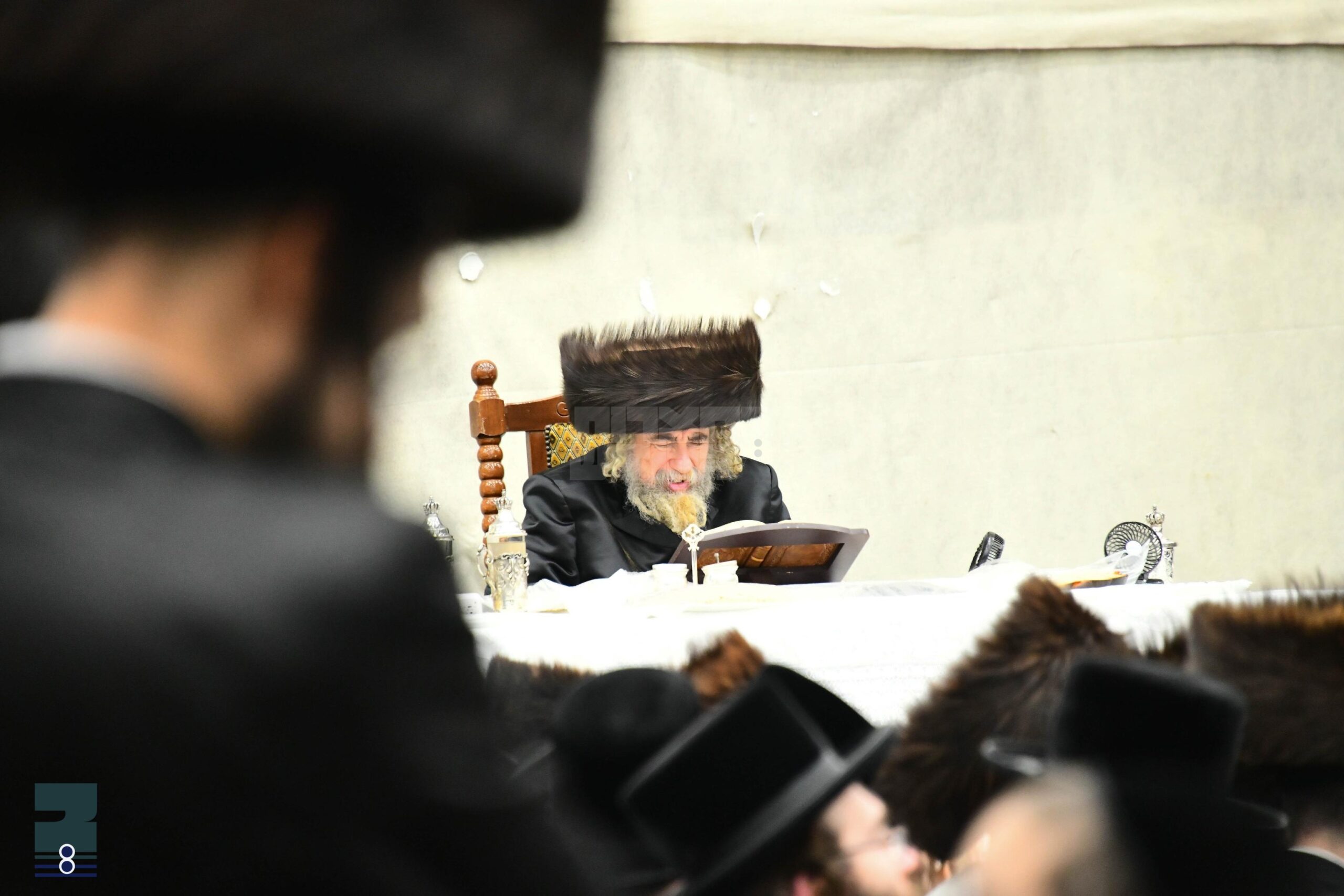צו שלש סעודות איז די רבי אריינגעקומען ביים זמן רבינו תם, און צווישן די זמירות משמיע געווען דברות קודש, דערנאך האט די רבי פארטיילט עפלעך פאר אלע בחורים, און די בחורים זענען דורך זאגן לחיים כנהוג. ארום צוויי אזייגער אויפדערנאכט האט מען געבענטשט ברכת המזון, נאכן בענטשן האט די רבי ווידער משמיע געווען דברים חוצבים מלהבות אש דברי הדרכה פאר די בחורים פאר אריבער א שעה צייט, און בסיום דבריו האט די רבי געוונטשן מברכות קדשו פאר אלע בחורים משתתפי השבת.