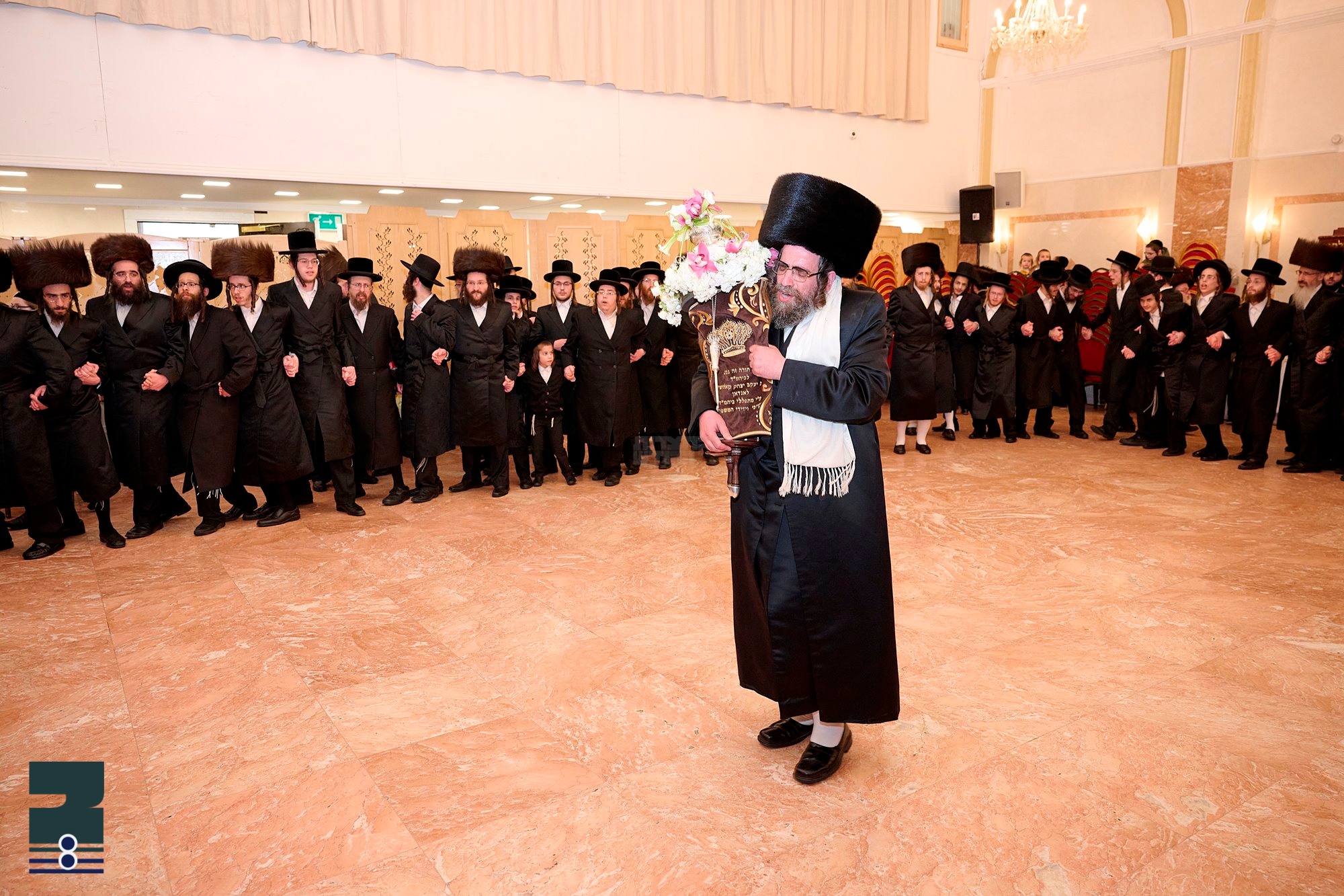 א הערליכע מעמד הכנסת ספר תורה איז פארגעקומען דעם זונטאג אין לאנדאן, פאר די ספר תורה וואס איז געשריבן געווארן צום ביהמ"ד קאלושין אין לאנדאן דורך די מתפללי הביהמ"ד און דער רב הביהמ"ד הגה"צ רבי מאיר שפיגל שליט"א האדמו"ר מקאלושין לאנדאן, לעילוי נשמתם פון אביו כ"ק אדמו"ר מאוסטראוו קאלושין זצ"ל, און חותנו כ"ק אדמו"ר מסטאניסלאוו לאנדאן זצ"ל וואס זענען נסתלק געווארן מיט פינעף יאהר צוריק ביי די קאראנע מגיפה, עס קומט פאר אין זאל פרדס וויזניץ אין לאנדאן, די ריקודין און סעודה לגומרה של תורה איז פארגעקומען אין די זאלן פון פרדס וויזניץ אין שפיץ פון די אדמור"י ורבני העיר.