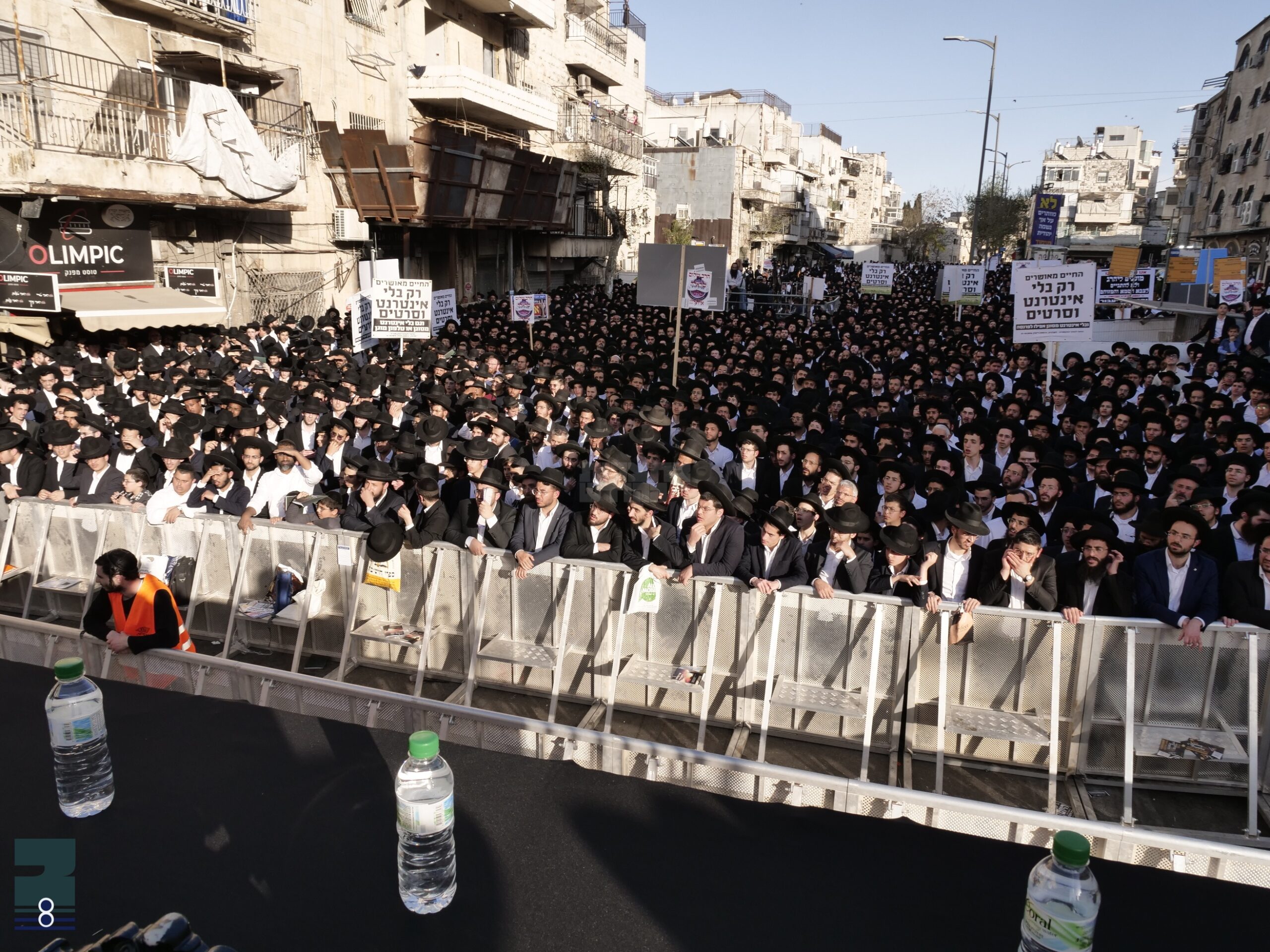 ברוך המקדש שמו ברבים! שווערע טויזנטער אידן בני עדות המזרח האבן פארלאפענעם וואך זיך פארזאמלט ברחובות ירושלים און ארויסגעגעבן דעם קול זעקה קעגן דעם שרעקליכן חוק הגיוס און גזירת שמד אויף בחורי ישראל היה לא תהיה.