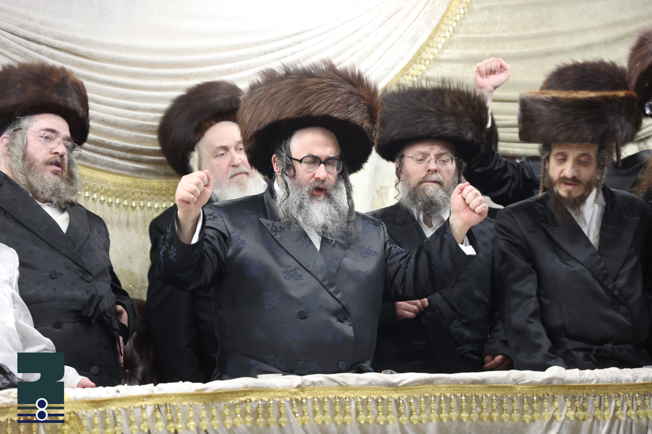ארום 8:30 אויפדערנאכט איז דער רב שליט"א אריינגעקומען צום גרויסארטיגן "סעודת משתה היין" אינעם היכל הגדול אין קרית ויואל משה במעמד קהל ועדה, הונדערטער סאטמארער חסידים מכל רחבי ארה"ק לשמוח בשמחת היום, וועלכע האבן זיך געווייקט שעות ארוכות להתקרב אל ה', לחזות בנועם ה', צו הערן דברים כדרבונות, ווי דער רב שליט"א האט עטליכע מאל משמיע געווען דברי תורה ויראה דברי הדרכה מיט פנינים יקרים בבחינת נכנס יין יצא סודות התורה. בתוך דבריו האט דער רב שליט"א מתריע געווען בקול גדול וחזק אנטקעגן די ביטערע גזירת הגיוס וואס די רשעי הציונים טוהן חלילה גוזר זיין אויף אחינו בני ישראל.