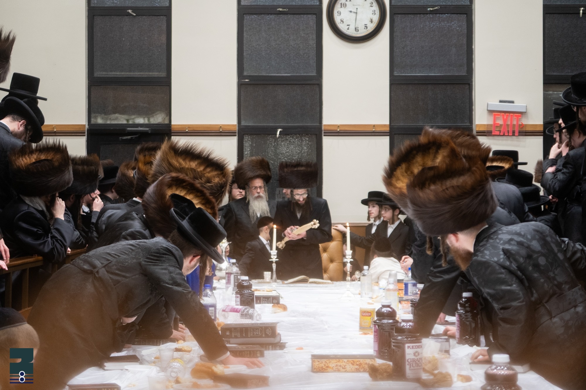 מיט די זמירות זענען נתכבד געווארן די רבנים אויפ'ן אויבן-אן, און די משמשים בקודש און ראשי מוסד הק' חסד לאברהם אין ארץ ישראל. דער רבי האט געוואונטשן לחיים און משמיע געווען דברי תורה אויף די פרשת השבוע מתובל מיט ווארמע חסידי'שע רעיונות און טייטשן.