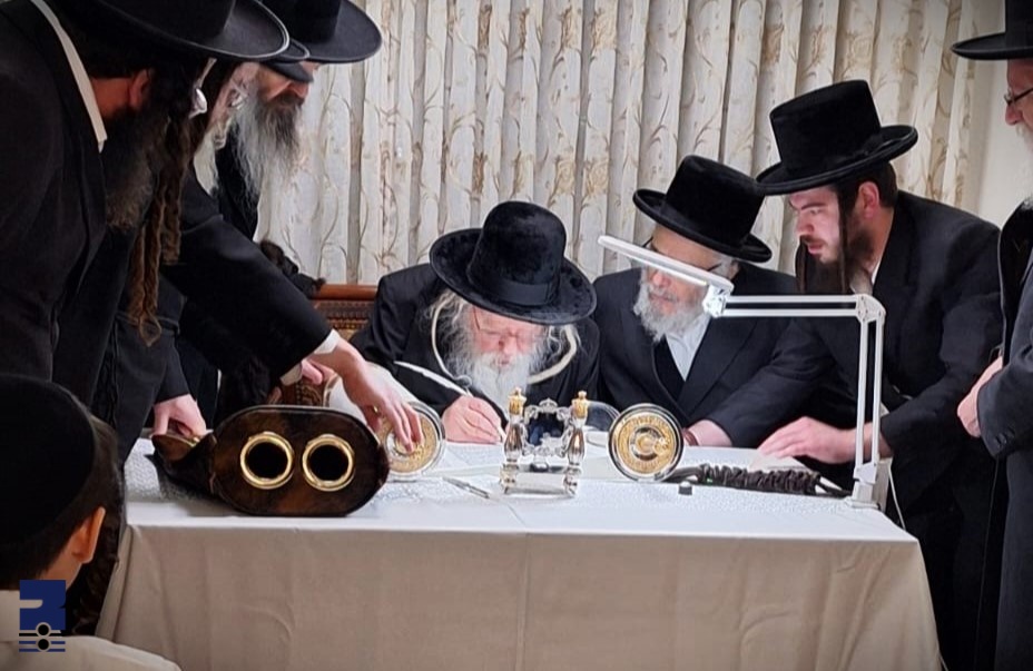 נעכטן אויפדערנאכט איז כ"ק אדמו"ר מגור שליט"א ארויף צום דירה אין ירושלים פון הרבני הנגיד ר' אביגדור עסטרייכער הי"ו ראש הקהל סקווירא, און ידיד נאמן לחצר הקודש גור, וואו עס איז פארגעקומען די מעמד כתיבת אותיות פאר די ספר תורה וואס ר' אביגדור שיחי' האט מנדב געוועהן און וועט די וואך אריינגעגעבן ווערן צום סקווירא ביהמ"ד אין ירושלים, אין שפיץ פונעם חשובן גאסט הרה"צ רבי יצחק טווערסקי בן כ"ק אדמו"ר מסקווירא שליט"א. דער רבי שליט"א האט אריינגעשריבן די אותיות און דערנאך געוואונטשן דעם נדבן ר' אביגדור הי"ו ובני משפחתו, און הרה"ג ר' אהרן גאלדמינצער דומ"ץ סקווירא ירושלים, א שוואגער פונעם נדבן.