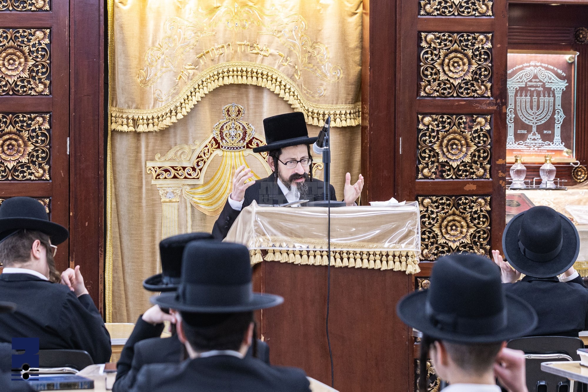 דער רבי שליט"א האט אויפגעטרעטן פאר די בחורים מיט דברי התעוררות בחיזוק לימוד התורה, יראת שמים, אהבת חברים און שמירת עיניים. באגלייט מיט דברי הדרכה צו די געהויבענער ימי השובבי"ם. נאכן שמועס האט דער רבי געזאגט קדיש דרבנן און אלע תלמידי הישיבה זענען דורך שלום נעמען פונעם רבי'ן שליט"א.