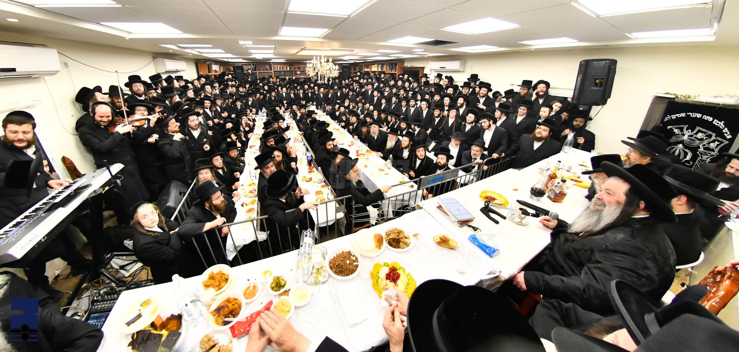 הונדעטער חסידים ואנשי מעשה ווארעמען זיך ביים התוועדות רבתי לרגל י"ט כסלו בחצר הקודש בישטינא