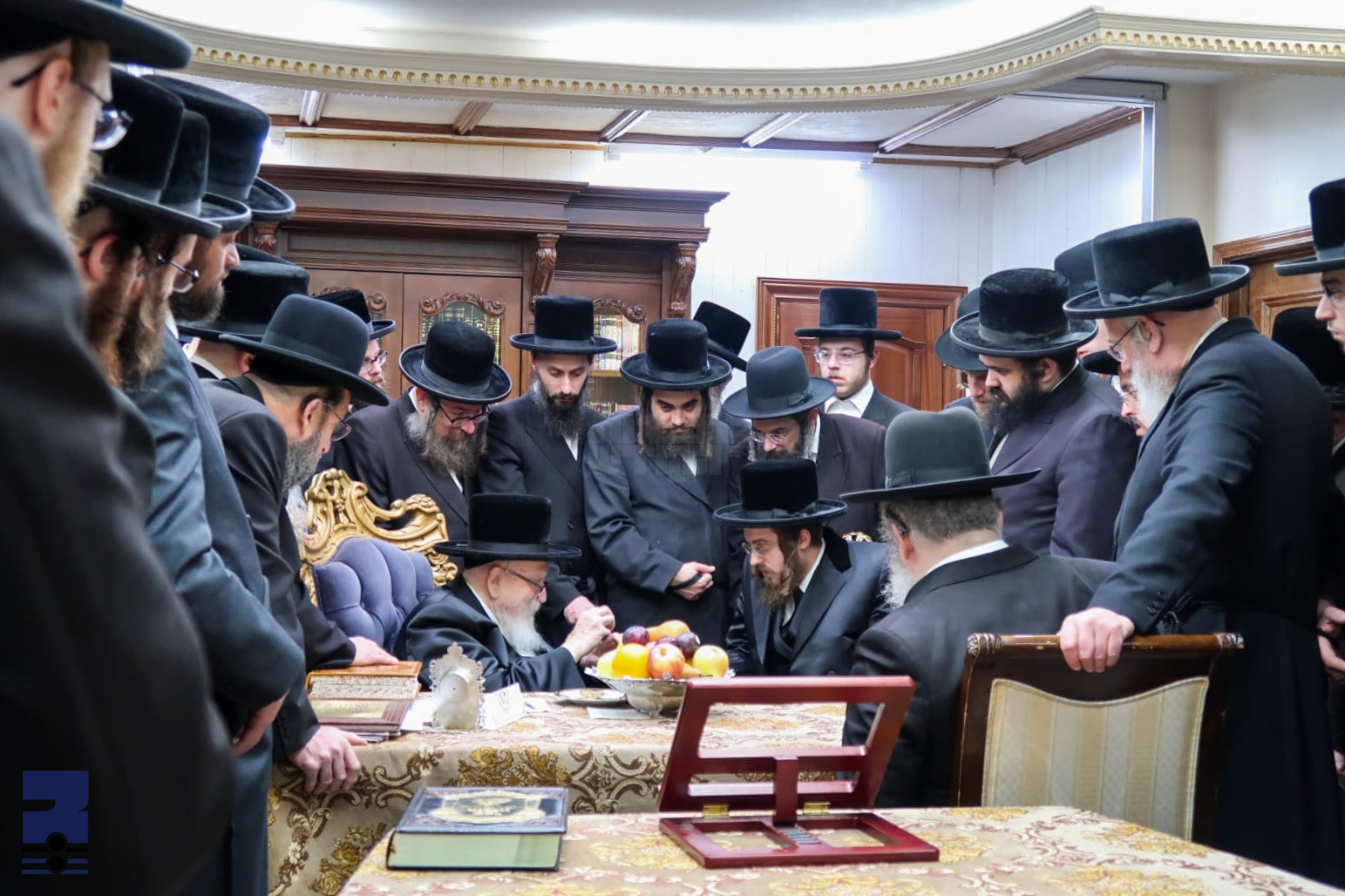 די נאכט איז כ"ק האדמו"ר מסאדיגורא שליט"א אנגעקומען קיין שיכון סקווירא אויף א באזוך ביי כ"ק אדמו"ר מסקווירא שליט"א, די רבי'ס האבן ארומגעשמועסט בנועם שיח בדברי תורה און סיפורי צדיקים פון די צדיקים הקודמים, און ייחוס צדיקי בית רוזשין און טשערנאביל ובמיוחד דער בעל ההילולא הרה"ק רבי אהרן מטשערנאביל זי"ע וועמענס יארצייט געפאלט היינט ח' כסליו. נאך קרוב צו א שעה האט די סקווירא רבי מכבד געוועהן די חושבע גאסט מיט פירות און דערנאך האבן זיך די אדמור"ים שליט"א איינגעשפארט ביחידות פאר איבער א שעה צייט, עס איז שוין געוועהן נאנט צו 1:30 באנאכט ווען די רבי'ס האבן זיך געזעגענט לשלום.