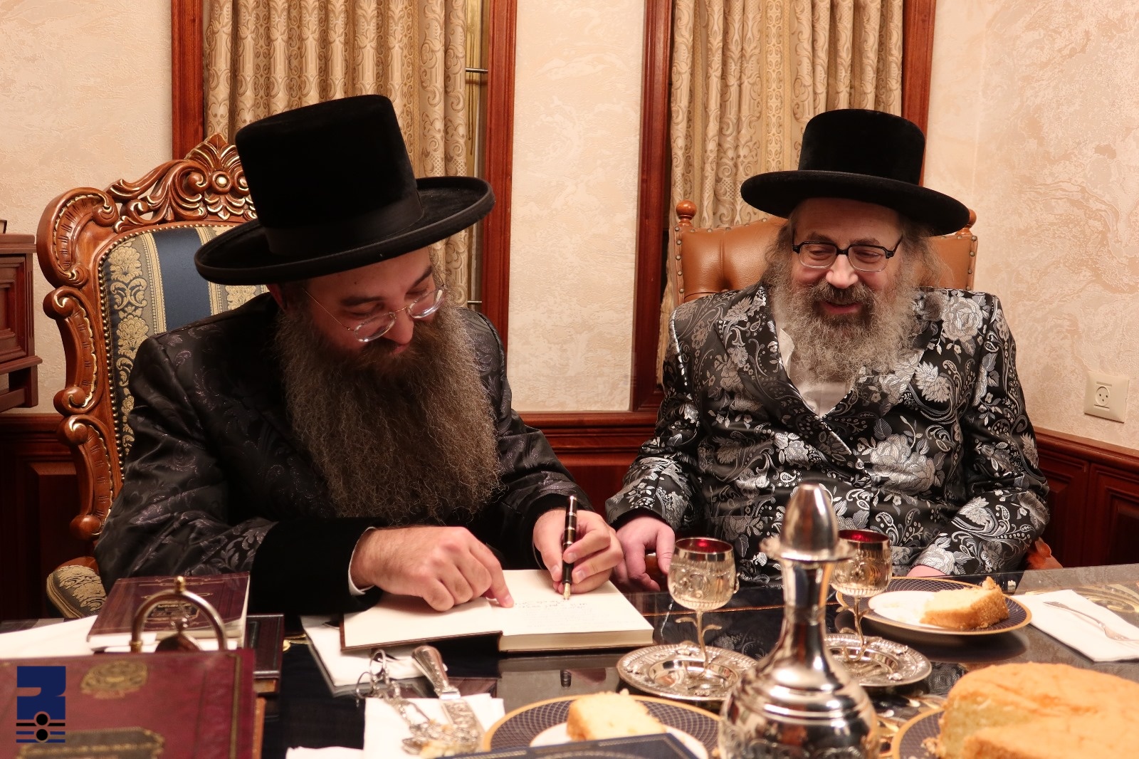 כ"ק אדמו"ר מוויזניץ לאנדאן שליט"א וואס איז צוגאסט די טעג אין עיה"ק ירושלים האט היינט נאכמיטאג באזוכט ביי כ"ק אדמו"ר מסאדיגורא ירושלים שליט"א וואו עס איז פארצויגן געווארן א שיינעם שמועס איבער פארשידענע מנהגי צדיקי בית רוזין און מעניני פרשת השבוע. ביים ענדע פון די באזוך האט האד' מסאדיגורא ירושלים איבערגעגעבן פארן רבי'ן זיין ספר משיבת נפש אויף חנוכה און אריינגעשריבן א הקדשה בכתב ידו.