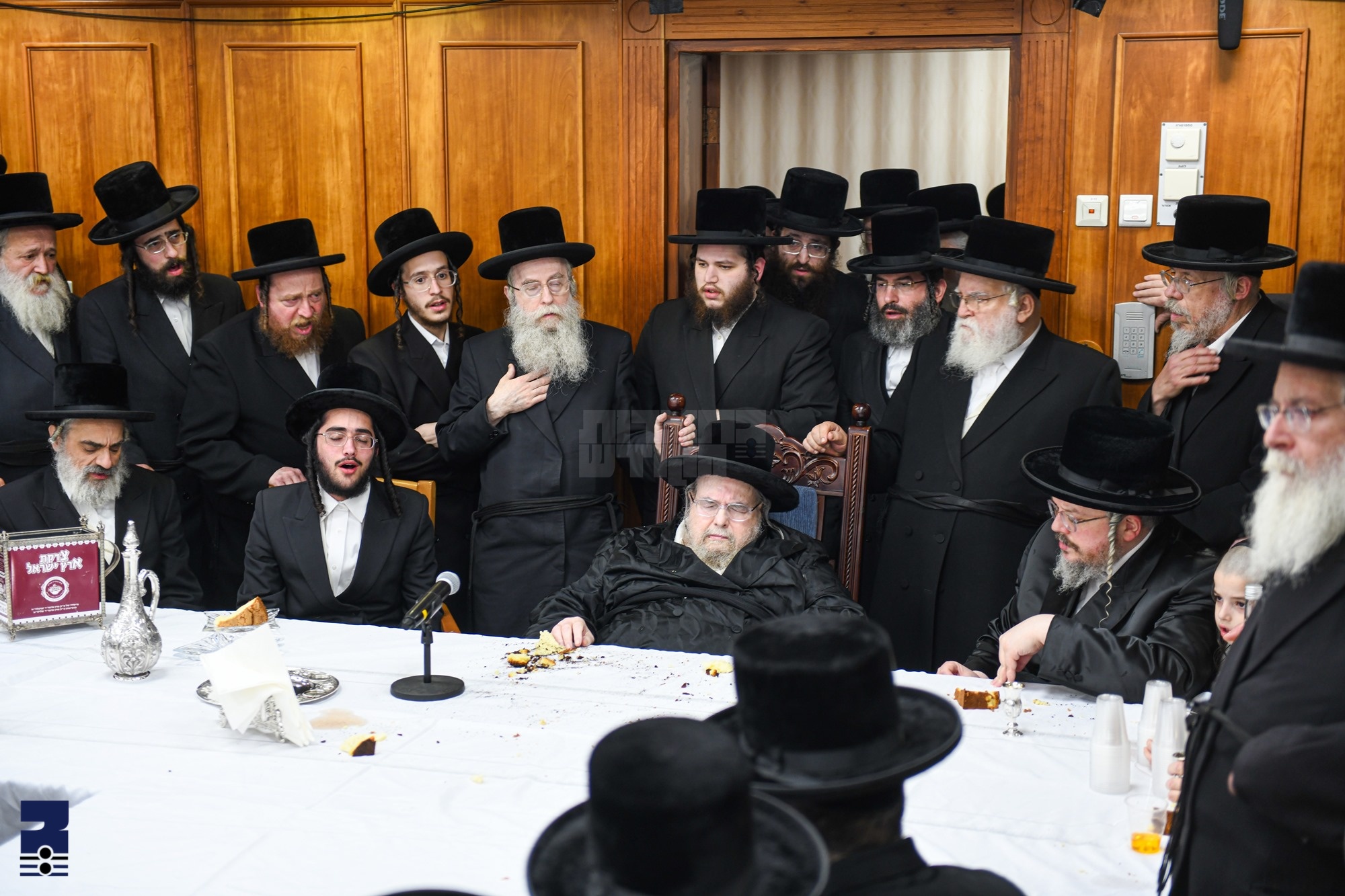 דער רב שליט"א האט געמאכט א ברכה אויף די לעקח און בראנפן און געוואונטשן לחיים פארן חתן, מחותנים ולכל הקהל הקודש און דערנאך מפריש געוועהן צדקה פאר מרכז מוסדות בעלזא און פארן גאליאנער כולל חיבת ירושלים לצדקת רבי מאיר בעל הנס.