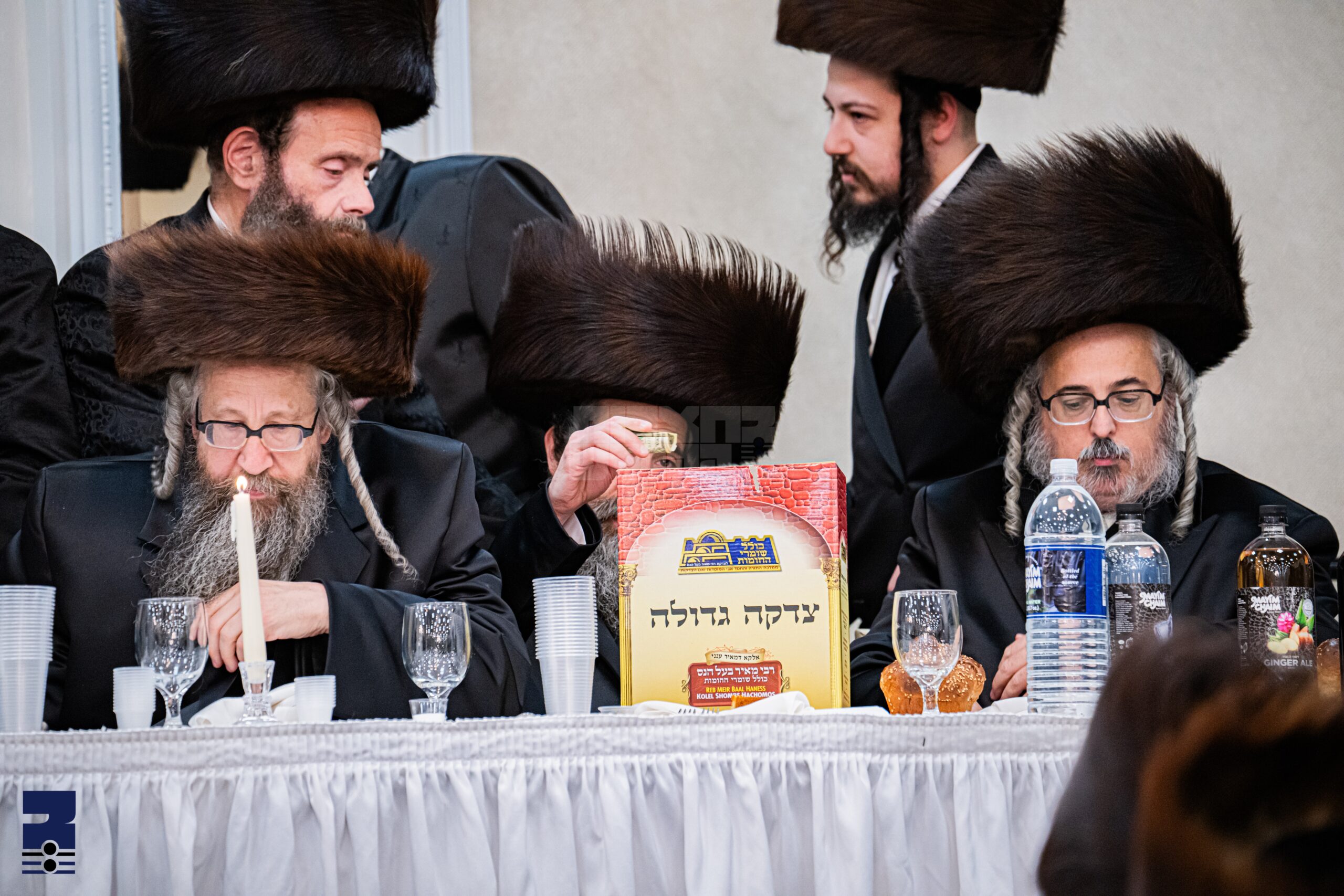 נאכן חופה האט זיך די ציבור געוואשן צום סעודת החתונה וואס איז סערווירט געווארן אינעם גרויסן זאל פאר די הונדערטער חסידים וואס זענען געקומען מרחוק ומקרוב לשוש ולשמוח בשמחת בית צדיקים. נאנט צו חצות הלילה איז די רבי שליט"א ערשינען צום שמחת החתונה, אין איז ענטפאנגען געווארן לקול מצהלות החסידים, די רבי שליט"א האט זיך ארויסגעלאזט אין א ריקוד של שמחה אויפן אויבן אהן און איז באזונדער געטאנצן מיט די חתן און מחותנים, נאכן זיך וואשן צום סעודה האט די רבי געוואנטשן לחיים לכל העם הנאספים, און די ציבור האט געהאט די געלעגנהייט אדורכצוגיין אל מול פני הקודש זיך וואונטשן בהאי עידנא דחדוותא, אינצווישן האט מען ממשיך געווען אין געהויבענע און פריילעכע ריקודין, בעת די רבי שליט"א האט זיך אומגעקוקט און מיטגעהאלטן די ריקודין אין א שמחה'דיגע שטימונג.