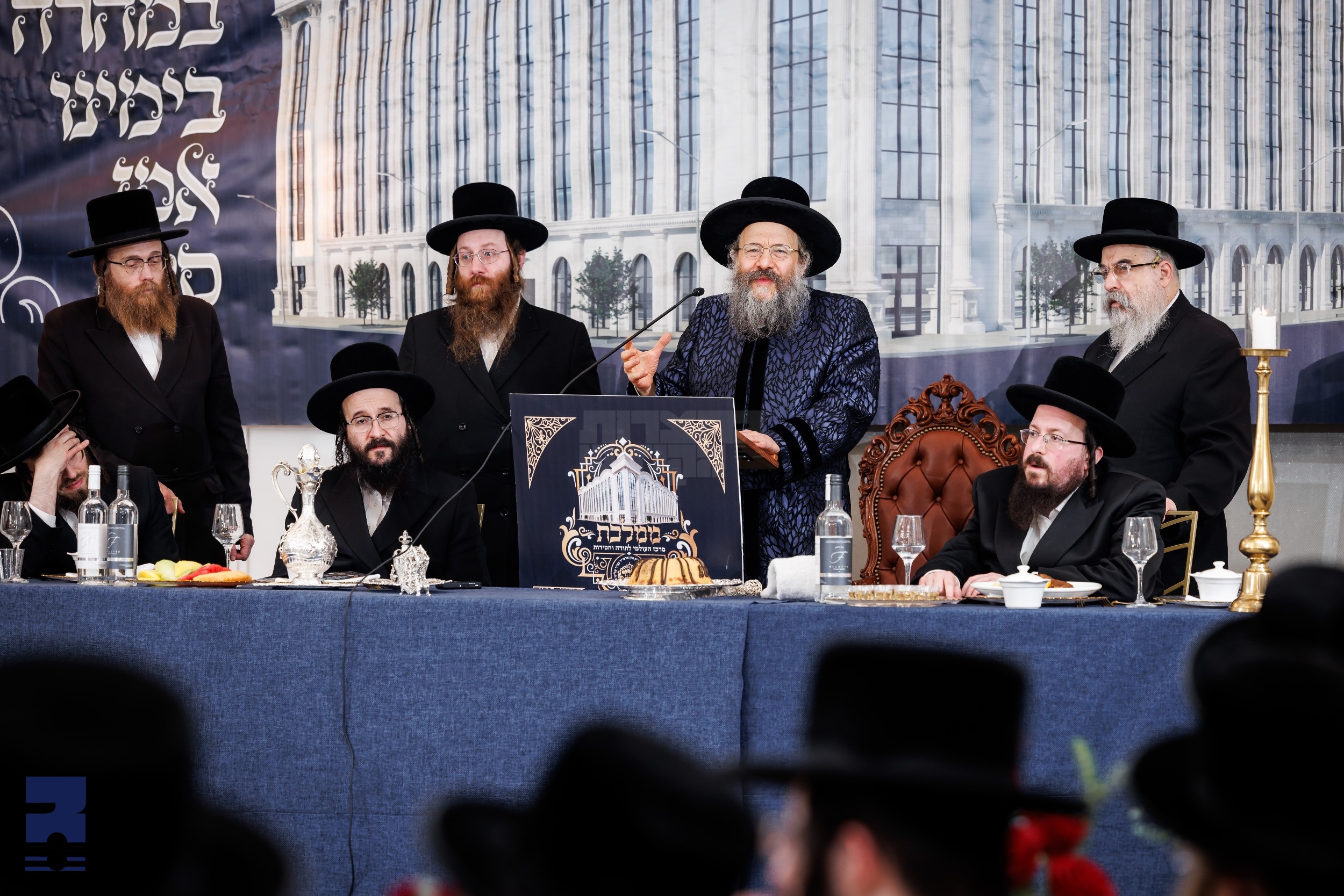 מיט א יראת הכבוד האט מען מקבל געווען את פני הקודש פון כ"ק אדמו"ר מבאבוב 45 שליט"א ביים ערשיינען צום מעמד, עס האט אויפגעטרעטן דער נואם הכבוד הרה"ג ר' יואל פריעדמאן אבד"ק עדת חסידים, און דערנאך האט מען געהאט די זכיה צו הערן דעם דבר ה' ברמה פונעם רבי'ן שליט"א וועלכע האט בתוך דבריו ארויסגעברעגנט דאס גרויס נחיצות פונעם נייעם ביהמ"ד און מחזק געוועהן די אינגעלייט זיך אונטערצונעמען די סכום הגון פון אכצן טויזנט דאללער מיט חודשליכע באצאלונגען וכדומה, און מסיים געוועהן בברכת קדשו.