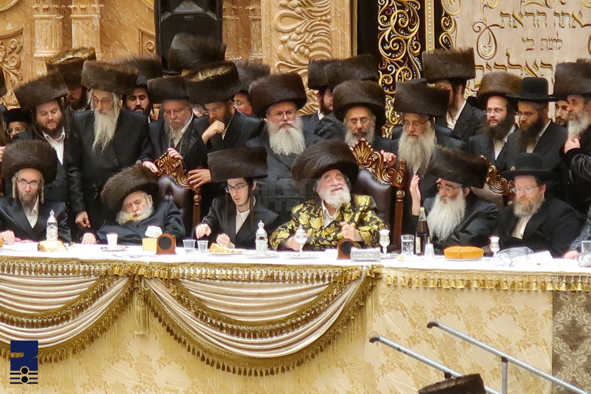 בשעה אכט דרייסיג איז די וויזניצער רבי שליט"א ערשינען צום שמחת החתונה, אינאיינעם מיט די חתן לקול תרועת השמחה ווען דער גאנצער ציבור ארום הייבט זיך בריקודין של שמחה בעוז ותעצומות, דערנאך האט זיך די רבי געוואשן צום סעודה און מען האט אויפגעגעבן די מאכלים, אום ניין דרייסיג האט מען מקבל געווען דעם זיידן די טשערנאבילער רבי וואו מען האט זיך דערביי ארויסגעלאזט אין א ריקוד נלהב, דערנאך האט זיך די טשערנאבילער רבי געוואשן צום סעודה און ווייטער מעודד געווען די ריקודין מיט גרויס שמחה, בשעת די סעודה האבן די אדמורי"ם שליט"א געוונטשן לחיים לכל הקהל הקודש.