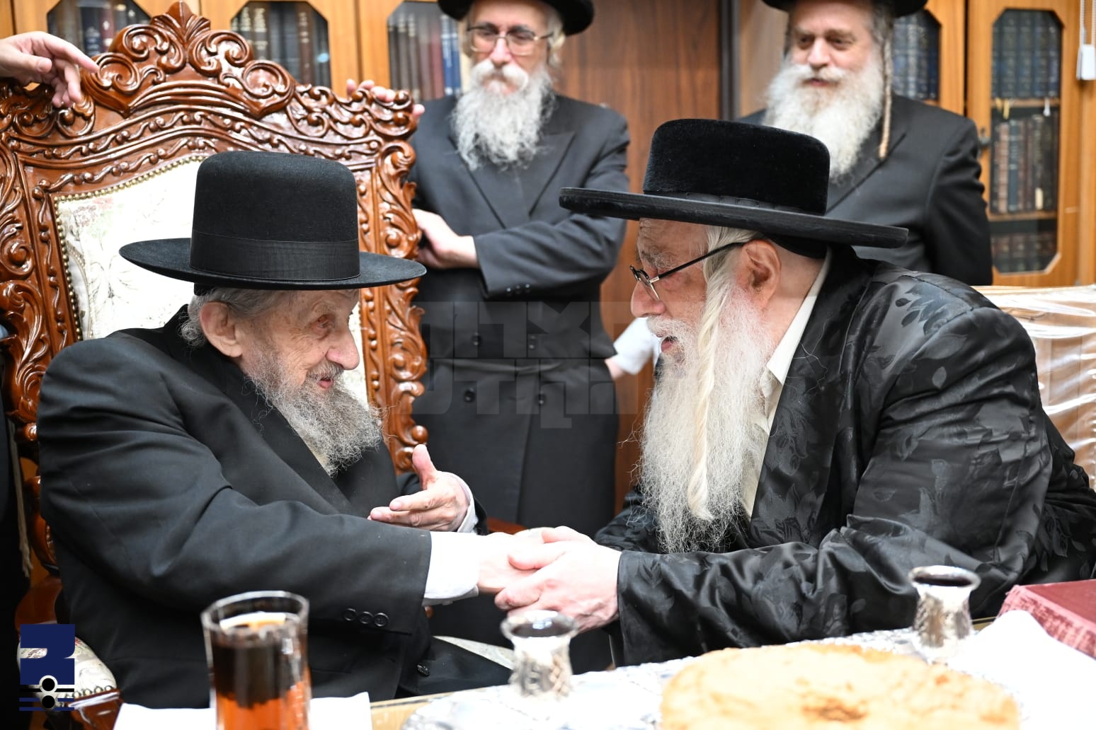 היינט נאכמיטאג איז מרן הגאון הגדול רבי דוב לאנדא שליט"א ראש ישיבת סלאבאדקע אנגעקומען אויף א ביקור גומלין ביי כ"ק אדמו"ר מצאנז שליט"א, וואו עס איז פארצויגן געווארן א שיינעם תורה'דיגן שמועס קרוב צו דריי פערטל שעה און ביים ענדע פונעם באזוך האט דער רבי שליט"א מכבד געוועהן דעם ראש ישיבה מיט לחיים און ארויסבאגלייט ביז צו די גאס. נעכטן מאנטאג איז דער צאנזער רבי אריבערגעקומען אויף א באזוך אינעם אכסניא פונעם סלאבאדקע ראש הישיבה, זייענדיג מקבל פנים דעם גרויסן גאסט אנקומענדיג קיין קרית צאנז אויף אפרוה, וואו די רבי מיטן ראש הישיבה האבן ארומגעשמועסט בענינים העומדים ברומו של עולם, דאראונטער די גזירת הגיוס אין ארץ ישראל און דער מסע ההצלה וואס די גדולי ישראל האבן אונטערגענימען קיין חוץ לארץ צו דעם צוועק.