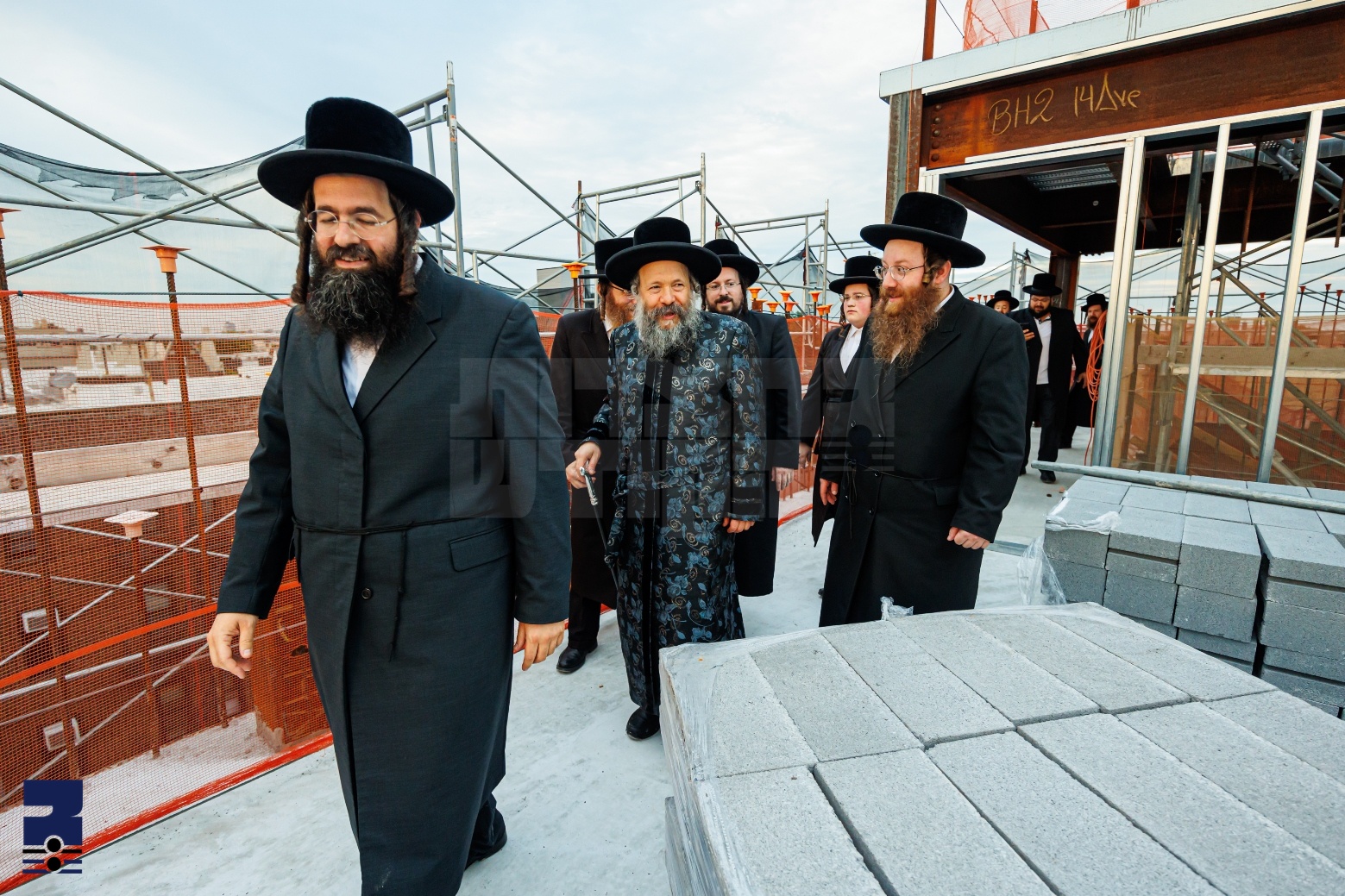 אין א לענגערע באזוך וואס האט פארשאפט גרויס נחת, האט דער רבי שליט"א, אין באגלייטונג פון ראשי הנהלת ועסקני 'קרן הבנין' אין שפיץ פון בנו הרה"צ רבי יחזקאל אונגער שליט"א מראשי וועד קרן הבנין, און האט דורכשפאצירט דעם בנין לארכה לרחבה, איבער אלע זיבן שטאק, ביים היכל הגדול, מקוה טהרה, היכל התורה און נאך, הערנדיג א באריכט איבער די אנטוויקלונגען אין יעדן איינציגן אפטיילונג.