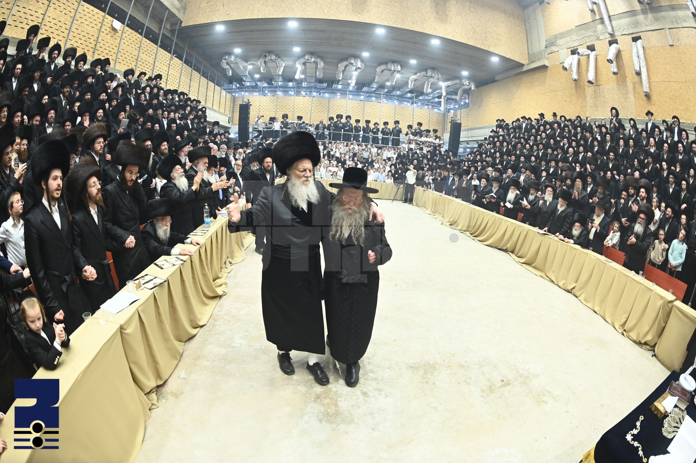 מה נהדר היה המראה ווען די רבי שליט"א איז ערשינען אין ביהמ"ד מיטן ספר תורה, און האט ענטפאנגען מיט התרגשות מורו ורבו הגאון הגדול רבי ברוך דב פוברסקי ראש ישיבת פונוביז וועלכע האט זיך מטריח געווען בטירחיה דגברא רבה צו באשיינען די מעמד, די רבי מיטן ראש ישיבה האבן זיך ספאנטאן ארויסגעלאזט אין א ריקוד נלהב וואס האט ארומגענימען דעם גאנצן ציבור אין גרויס התרגשות. נאך די ריקודין אין ביהמ"ד האט די רבי פארגעזאגט 'לדוד מזמור' און מזמור לדוד בקול חוצב להבות אש, און אריינגעפירט דעם ספר תורה צום ארון הקודש מיט טענץ אין געזאנג.