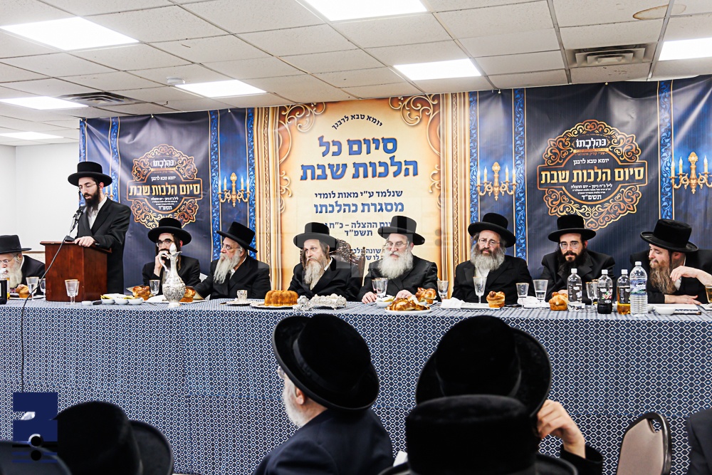 דער ציבור האט דאן מיט אפענע מיילער אויסגעהערט די דרשה נפלאה דורכ'ן נואם הכבוד הרה"ג ר' אלעזר ניסן רובין שליט"א, וואס ער האט אנגעהויבן מיט זיין פערזענליכע קשר מיט'ן רבי'ן ז"ל, און יבלחט"א דער רבי שליט"א, און די גרויסקייט פונעם יעצטיגן מעמד ווען מ'איז זוכה מסיים צו זיין גאנץ הלכות שבת.
